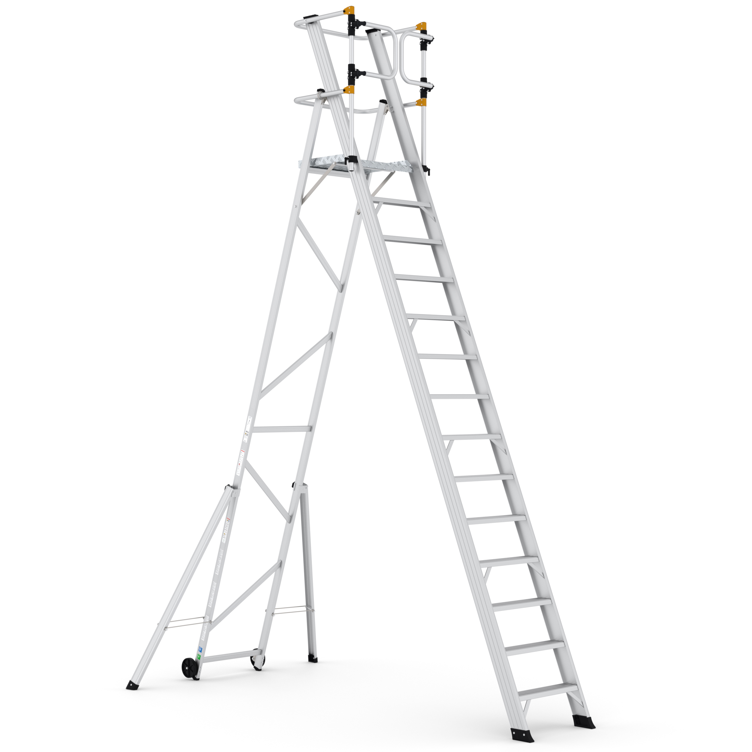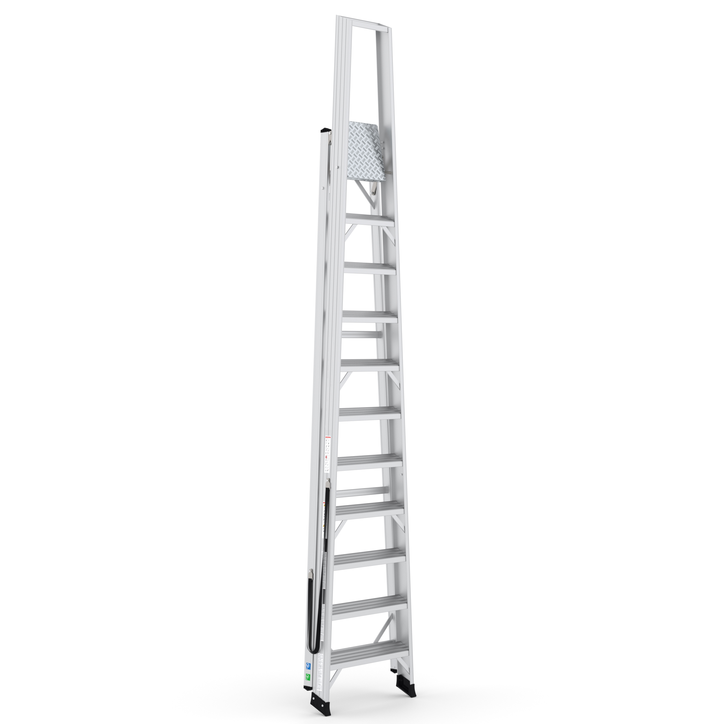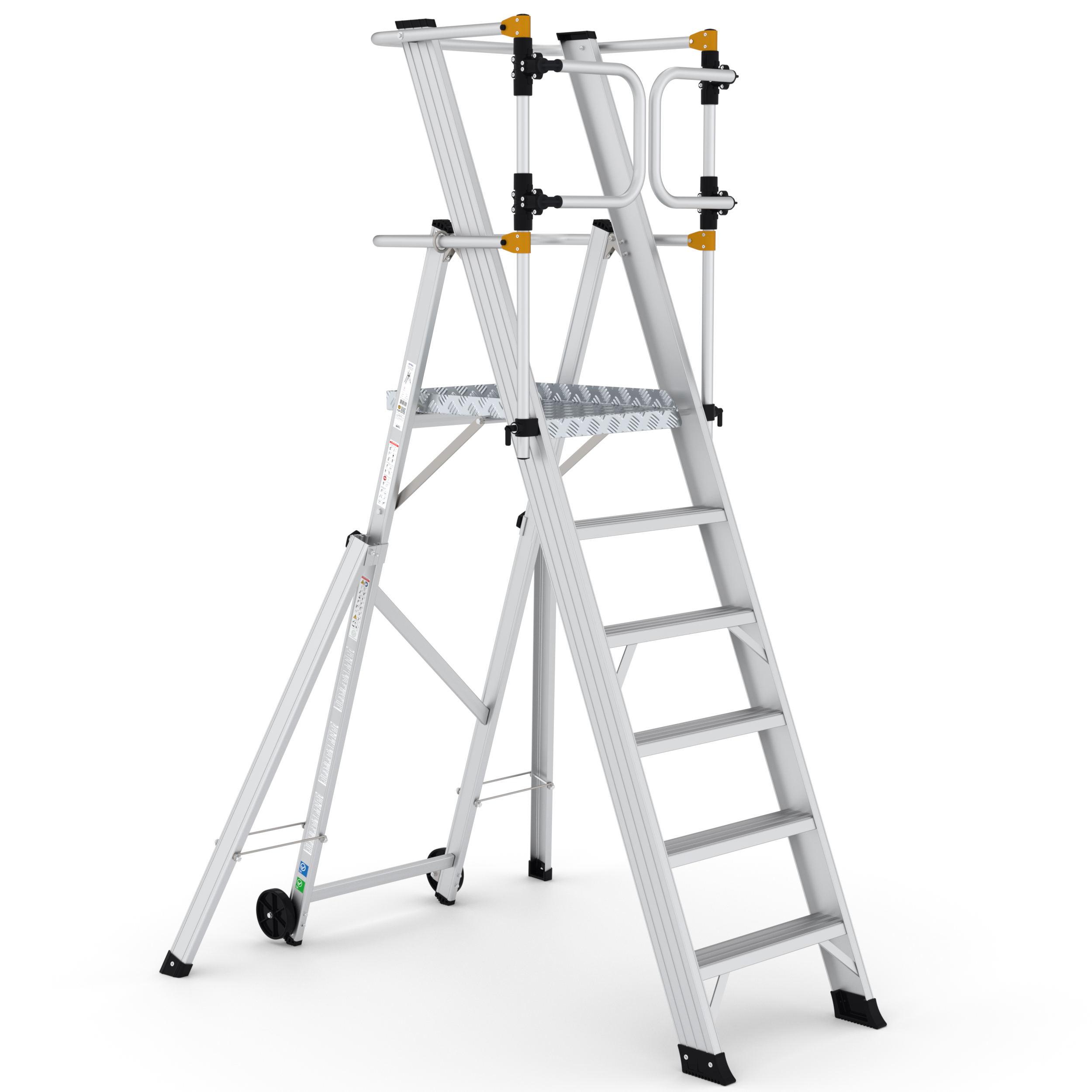 Wij gebruiken de hogere trap om bij de bovenste stellingen te komen. Staat stevig en heeft een groot platform. Zelfs op hoogte voel ik me veilig. Ideaal voor het magazijn.