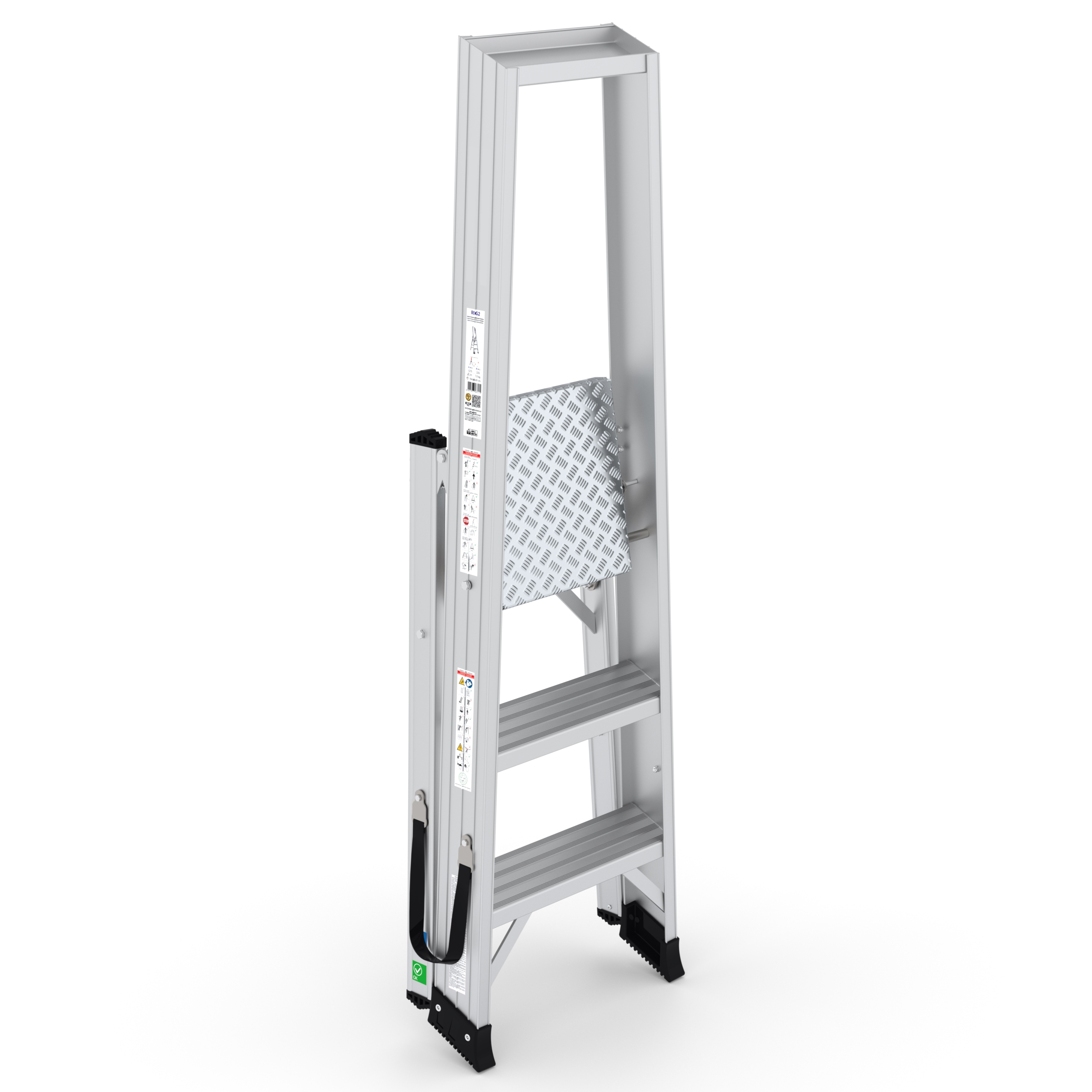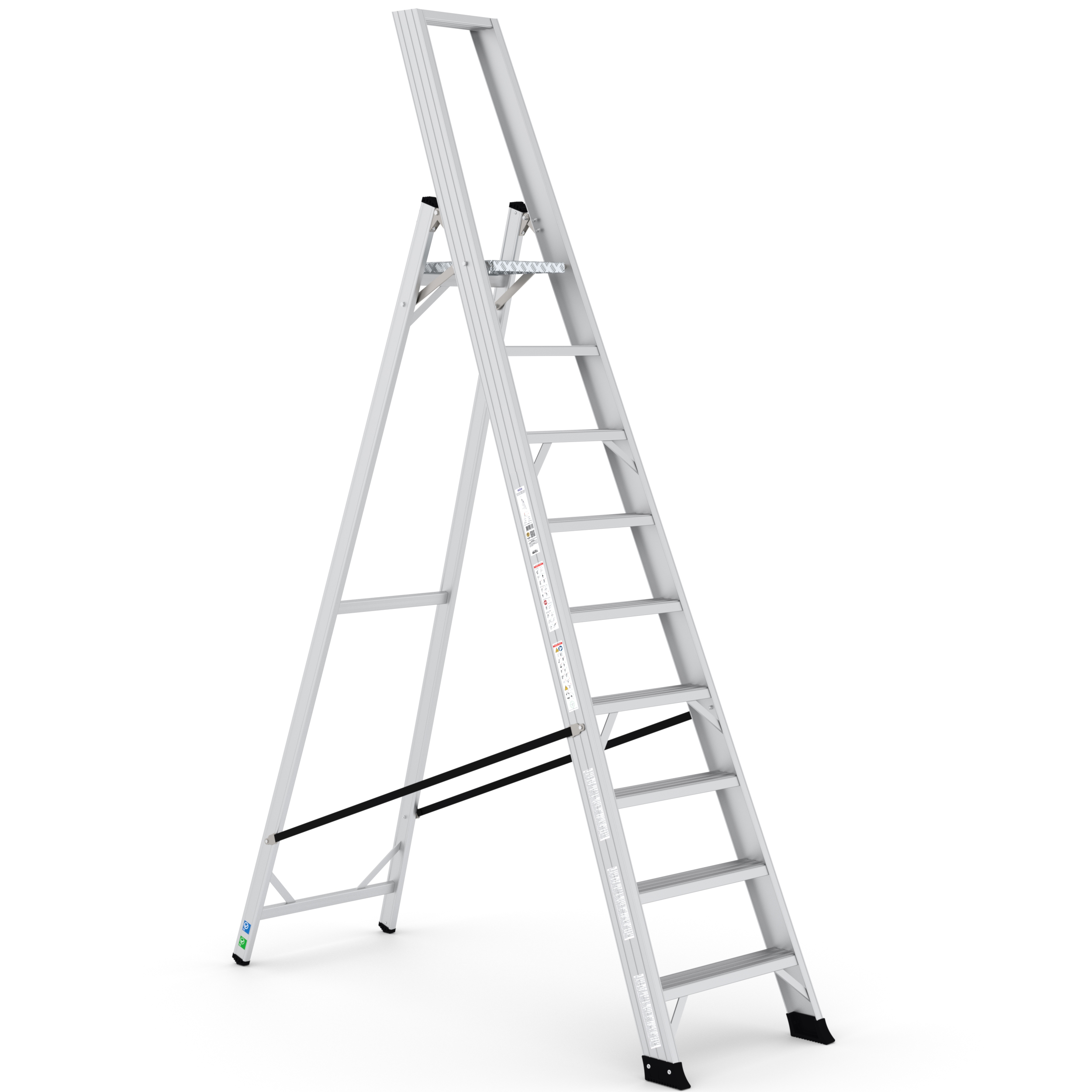 Hoewel hij professioneel is, gebruik ik hem ook voor klusjes thuis. Het geeft een veilig gevoel dat je op een degelijke trap staat.