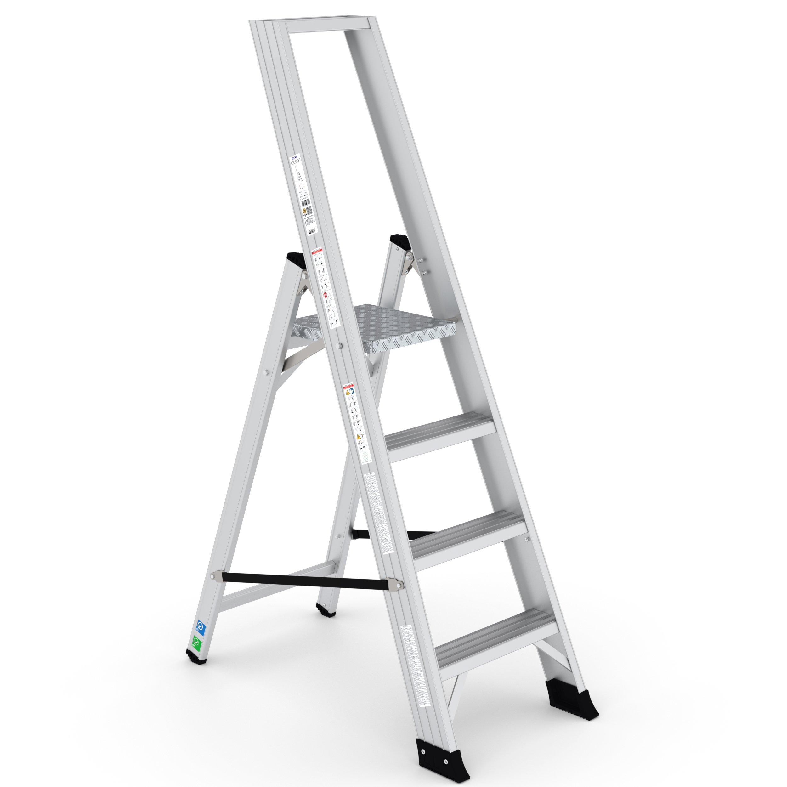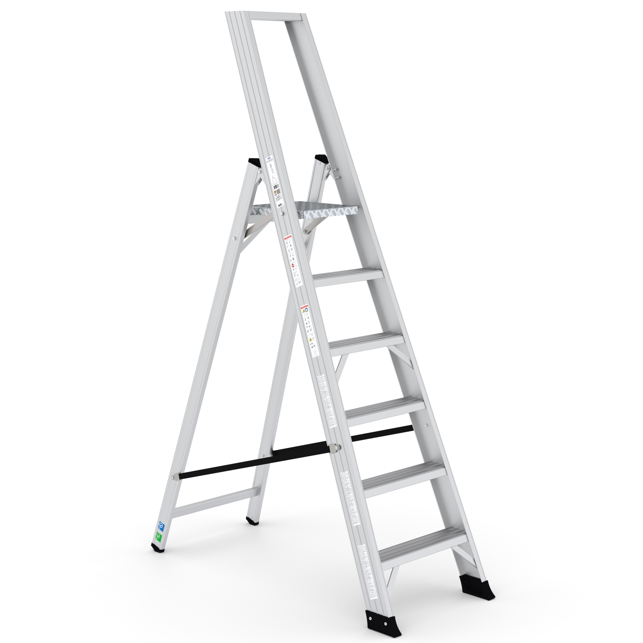 - Handig en draagbaar: Dankzij het handvat neem je de trap eenvoudig mee. De borgingsclip houdt de trapbenen tegen elkaar waardoor deze niet opengaan tijdens het vervoer.