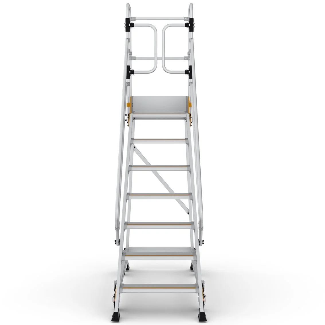 Deze bordestrap heeft 7 treden (platform meegerekend) en heeft een werkhoogte van 3,75 meter.