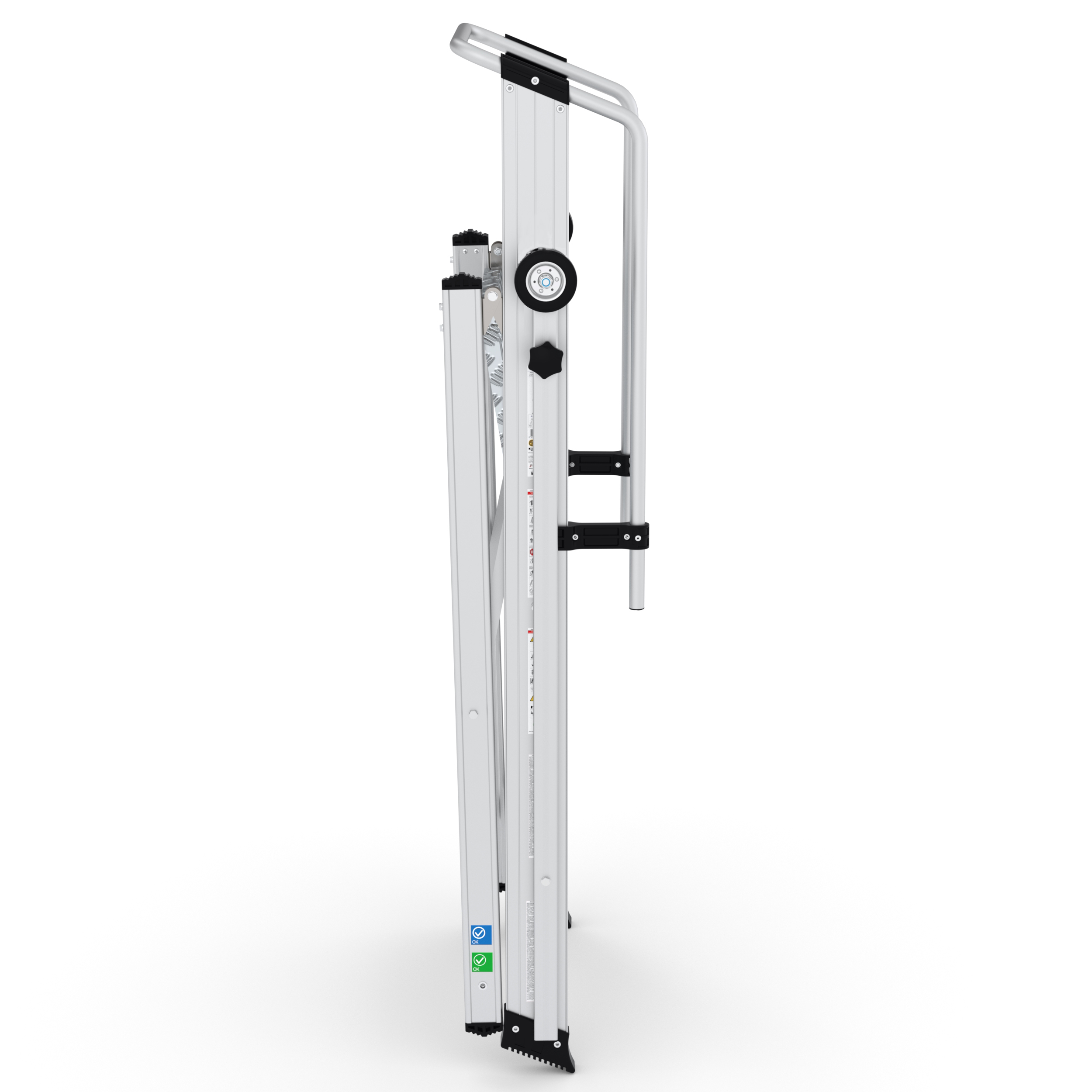 De trap is eenvoudig in te klappen om compact op te bergen.
