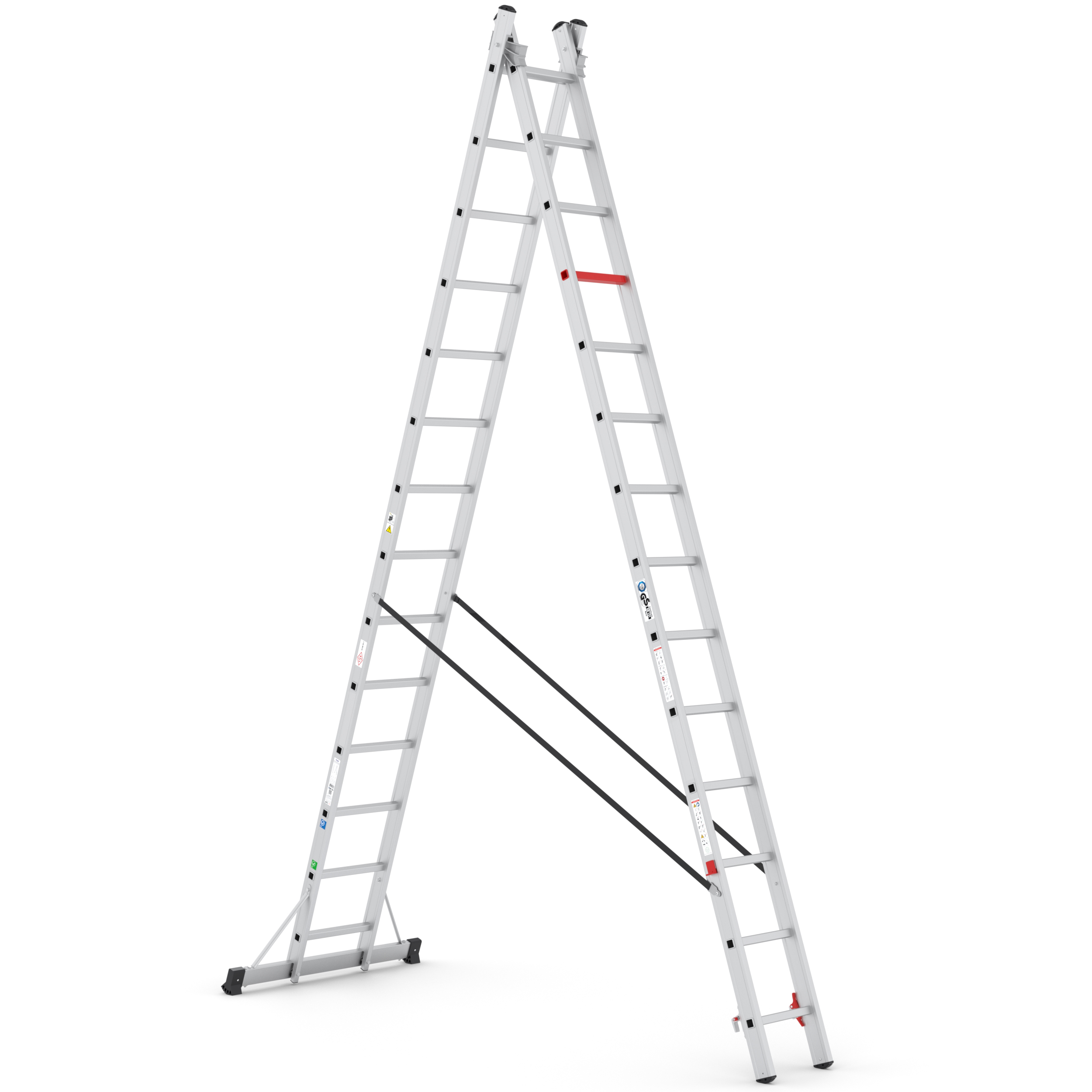 Dankzij het optimale gewicht en het eenvoudige borgingsmechanisme is de ladder zeer gebruiksvriendelijk. De stabilisatiebalk is daarnaast verstevigd met verstevigingsbeugels om de ladder optimale stabiliteit te geven.