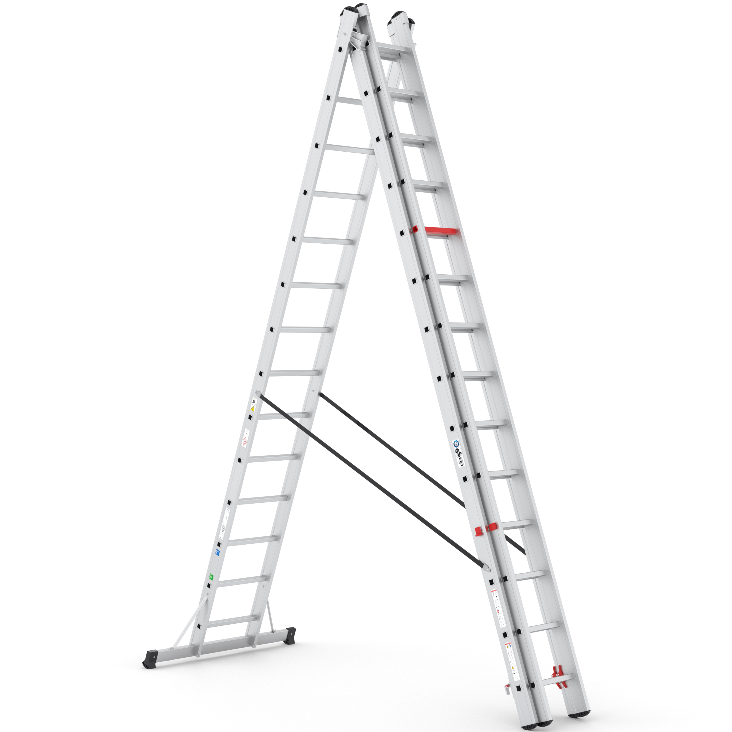 De reformladder kan in rechte stand tegen de muur gebruikt worden.