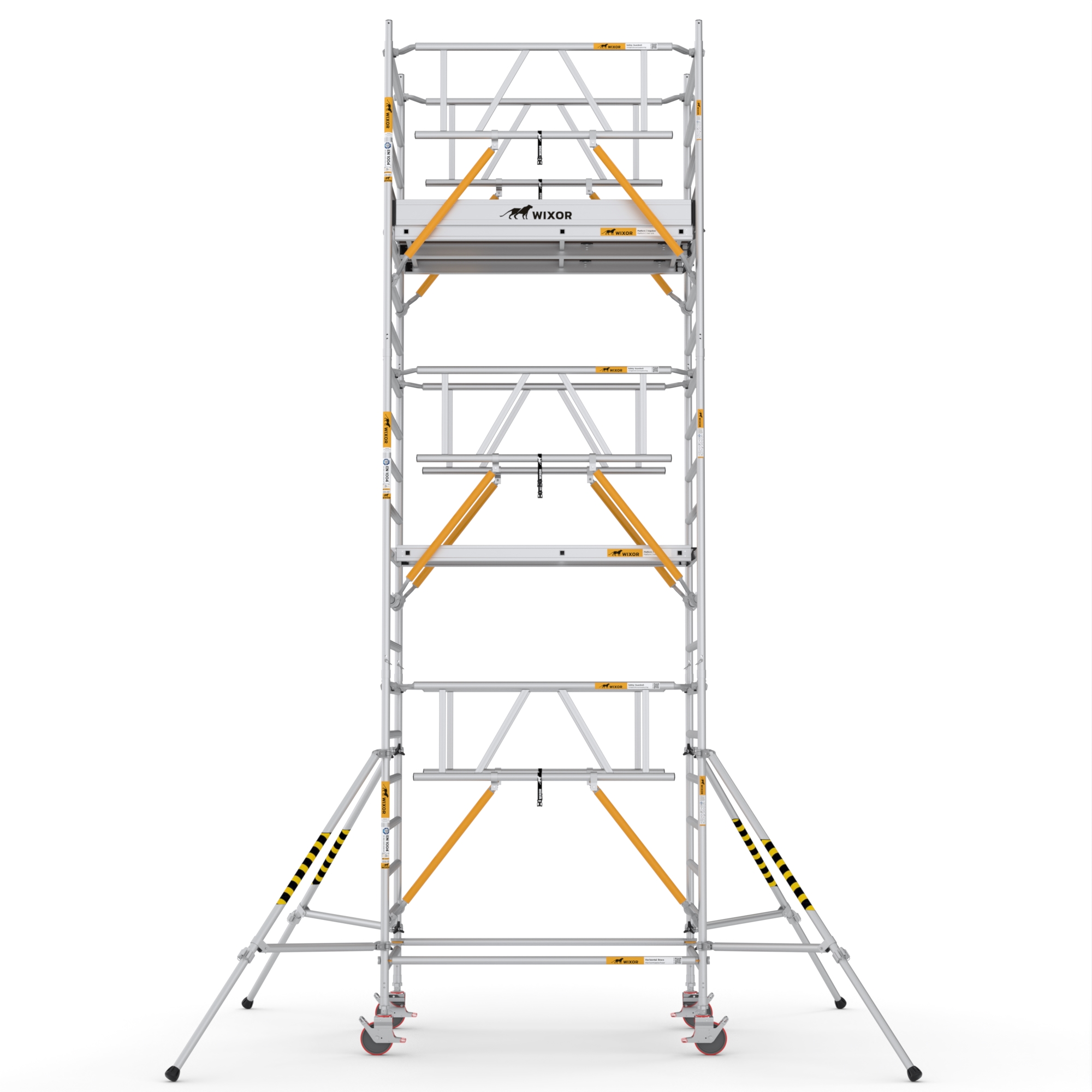 De Wixor rolsteiger heeft een universele maatvoering, wat betekent dat de onderdelen op een Wixor, Euroscaffold, ASC of Altrex rolsteiger passen.