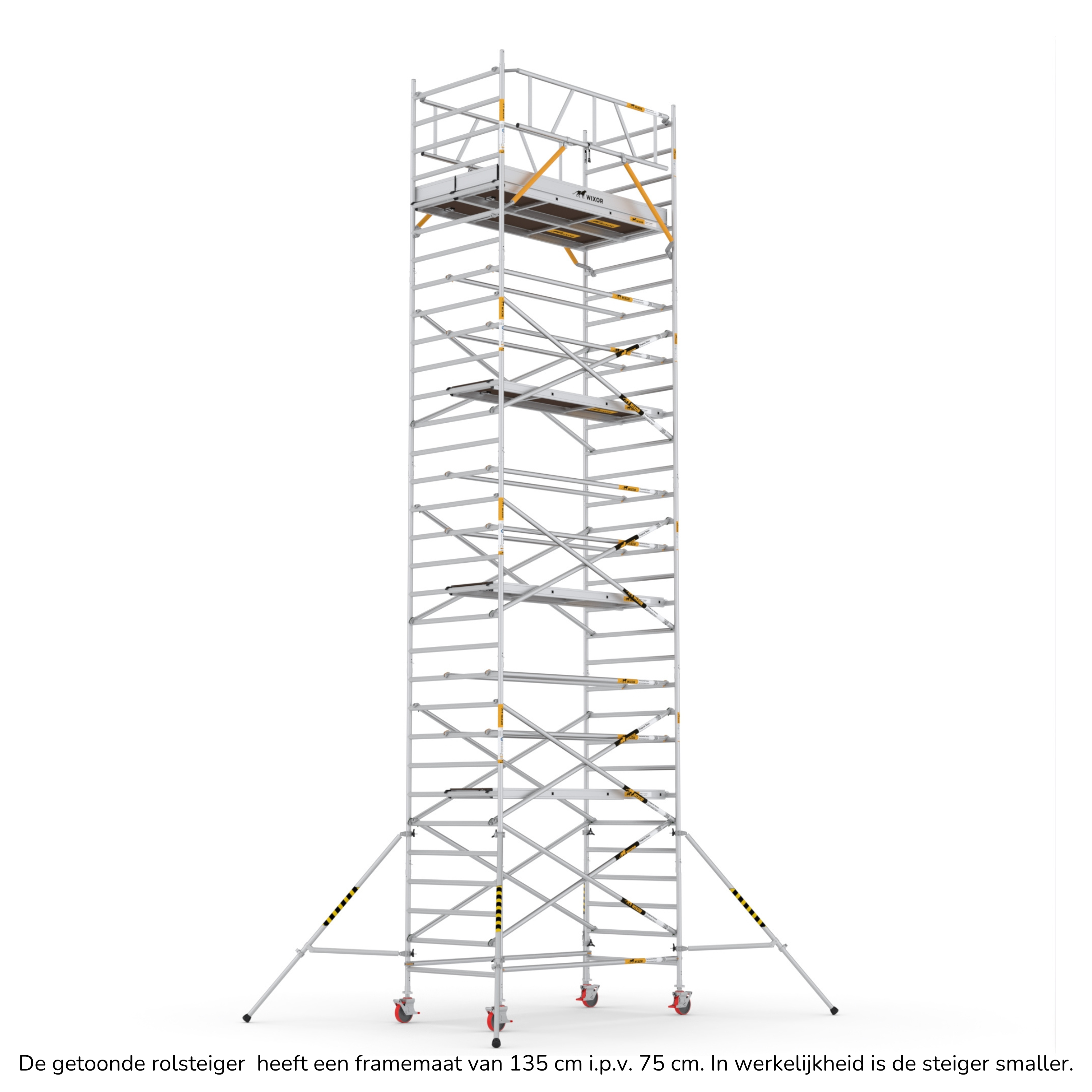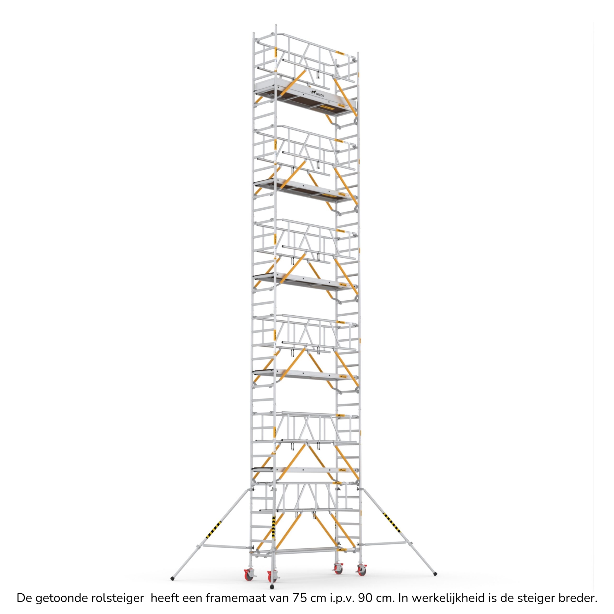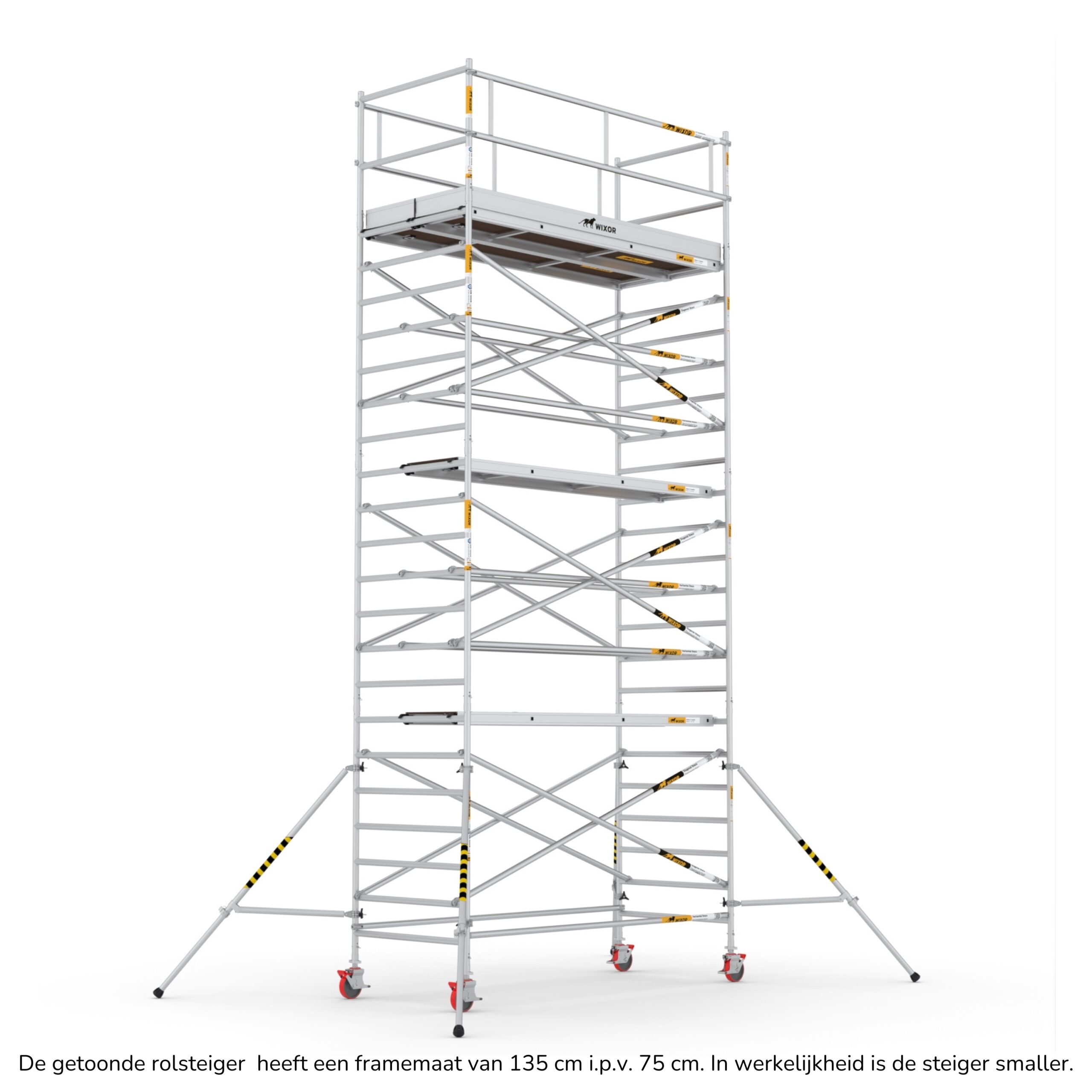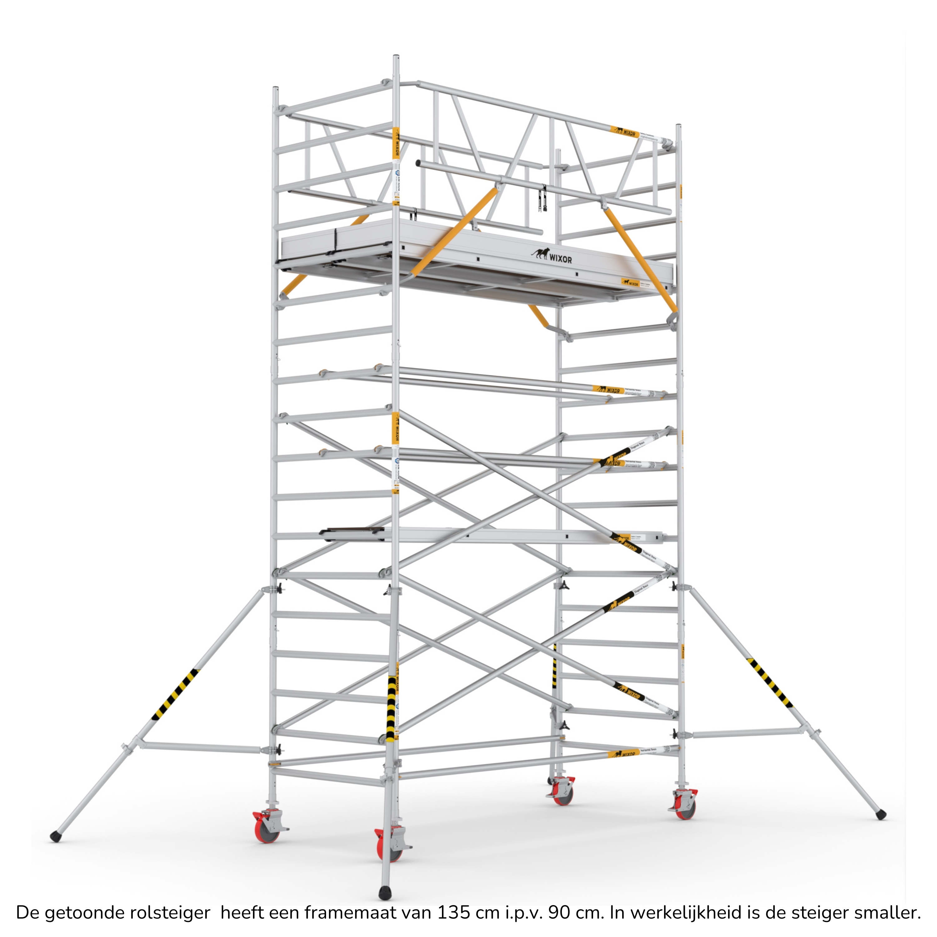 De Wixor rolsteiger heeft een universele maatvoering, wat betekent dat de onderdelen op een Wixor, Euroscaffold, ASC of Altrex rolsteiger passen.