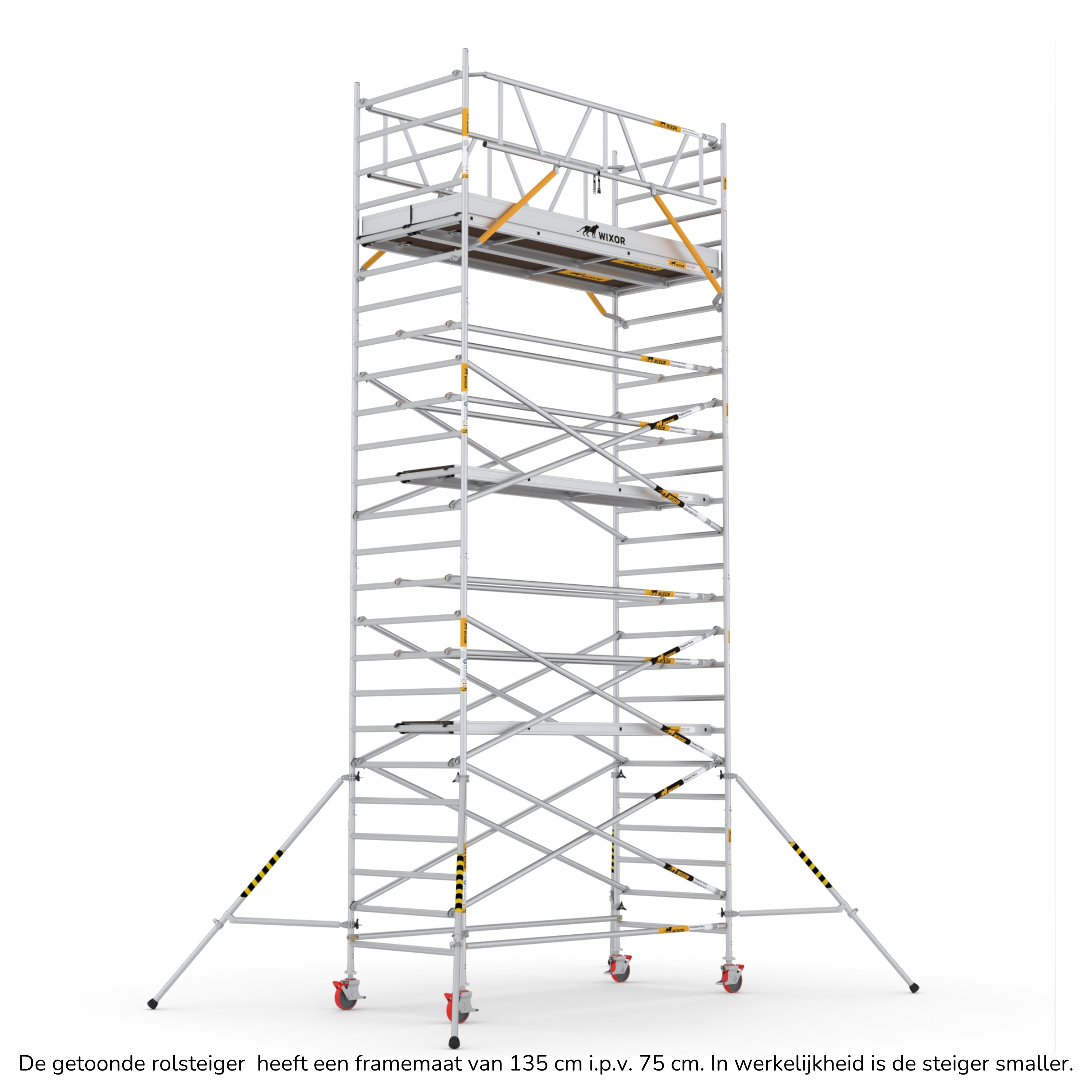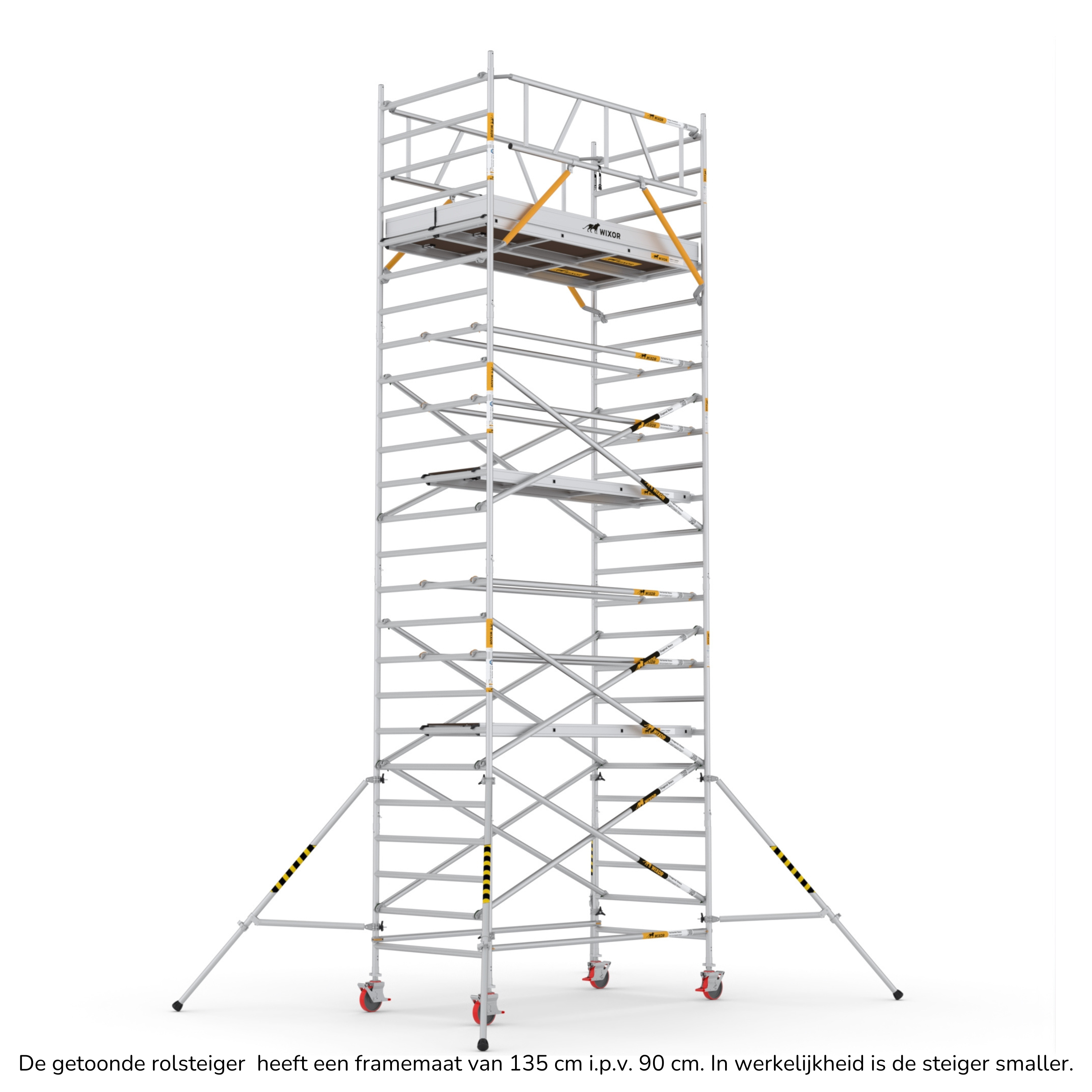 De Wixor rolsteiger heeft een universele maatvoering, wat betekent dat de onderdelen op een Wixor, Euroscaffold, ASC of Altrex rolsteiger passen.