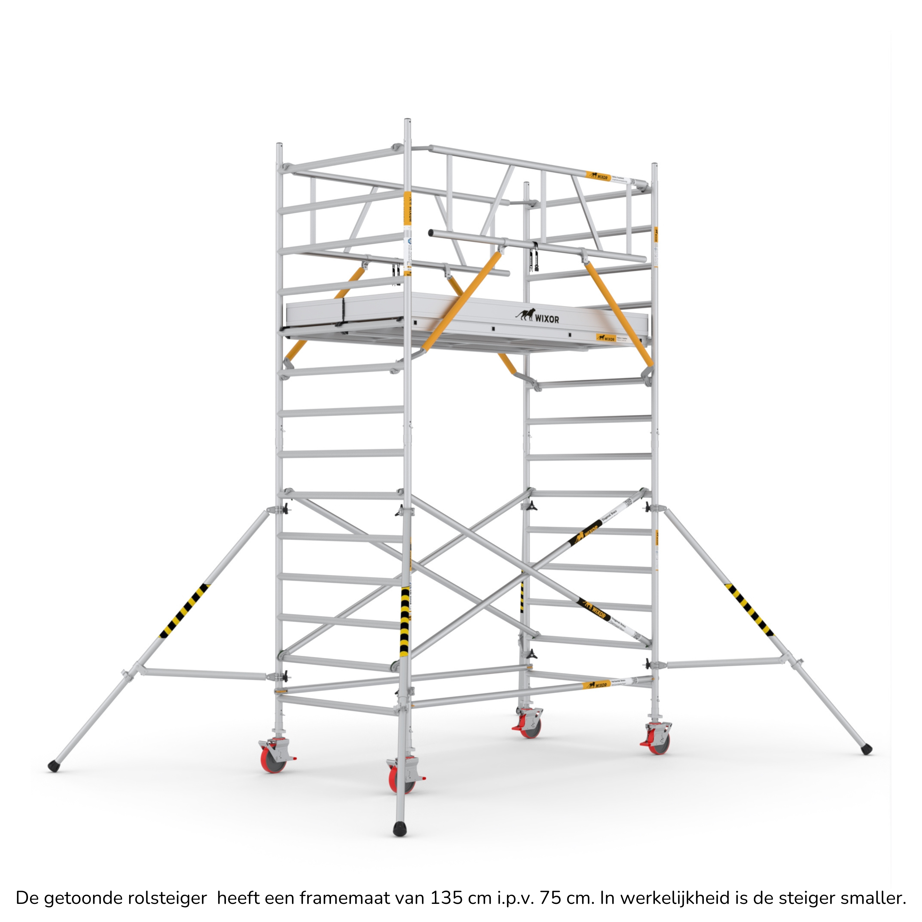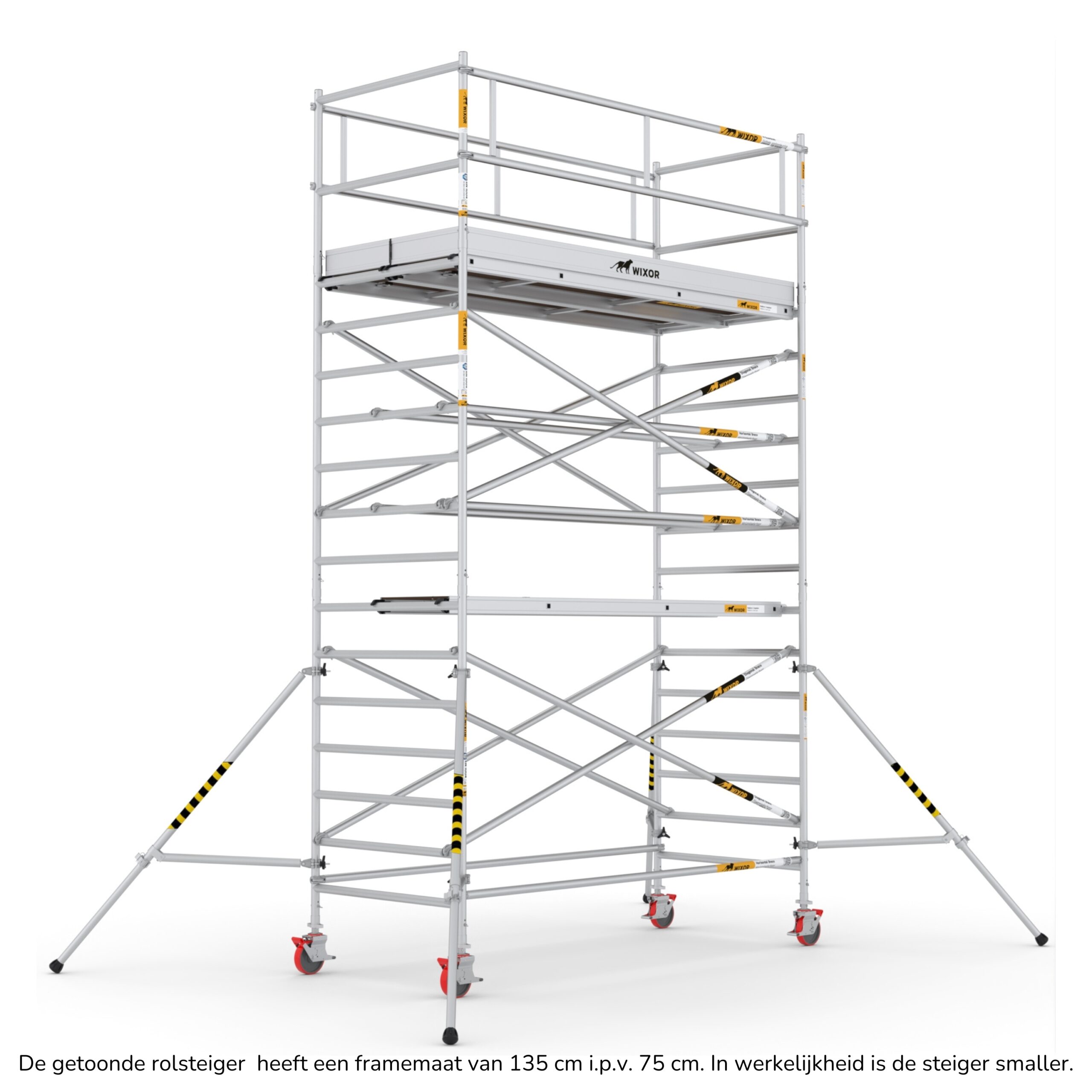 De Wixor rolsteiger heeft een universele maatvoering, wat betekent dat de onderdelen op een Wixor, Euroscaffold, ASC of Altrex rolsteiger passen.