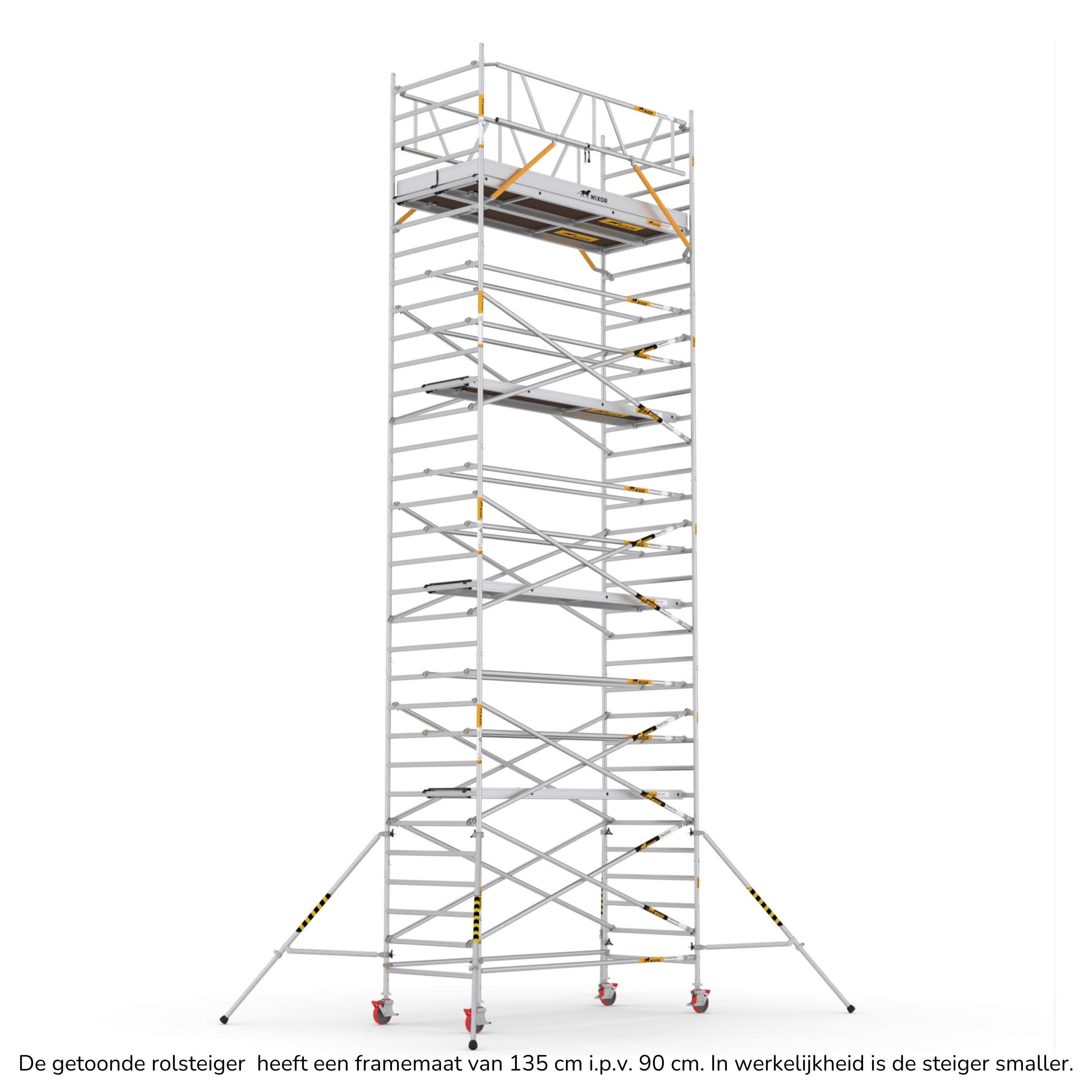 De rolsteiger behoort tot gewichtsklasse 3 en heeft een maximale vloerbelasting van 200kg/m². De totale belastbaarheid van de rolsteiger is 750kg.