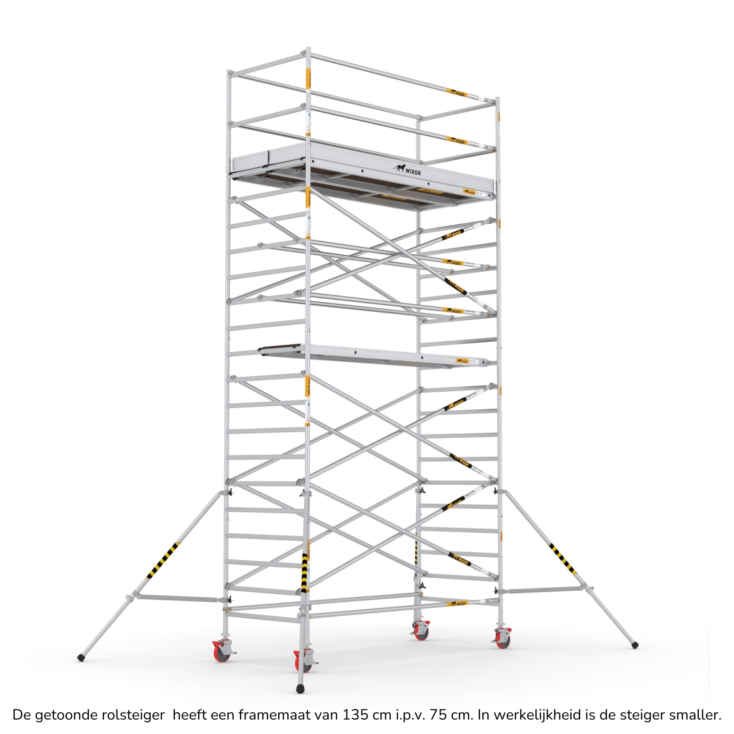 De Wixor rolsteiger heeft een universele maatvoering, wat betekent dat de onderdelen op een Wixor, Euroscaffold, ASC of Altrex rolsteiger passen.