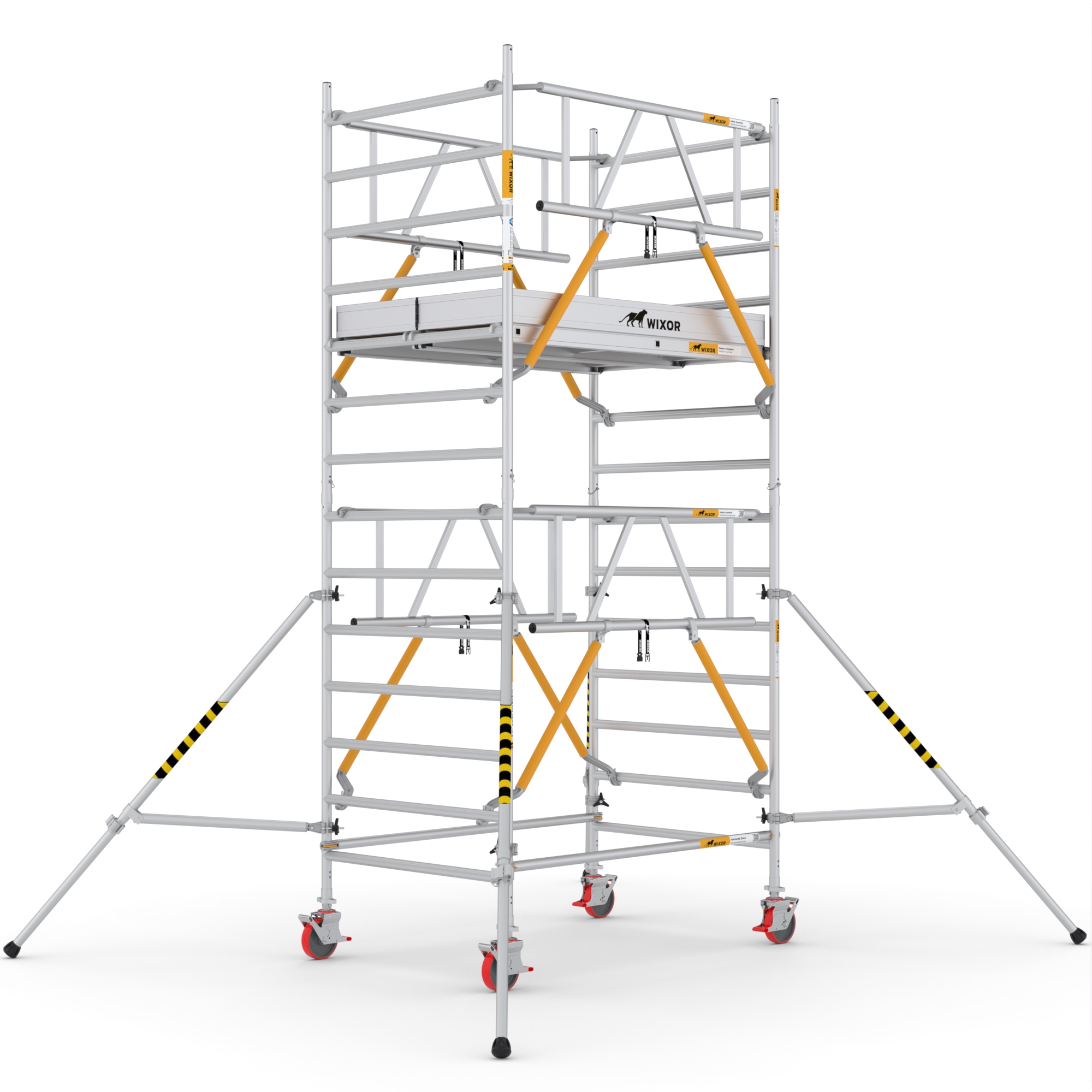 De Wixor rolsteiger heeft een universele maatvoering, wat betekent dat de onderdelen op een Wixor, Euroscaffold, ASC of Altrex rolsteiger passen.