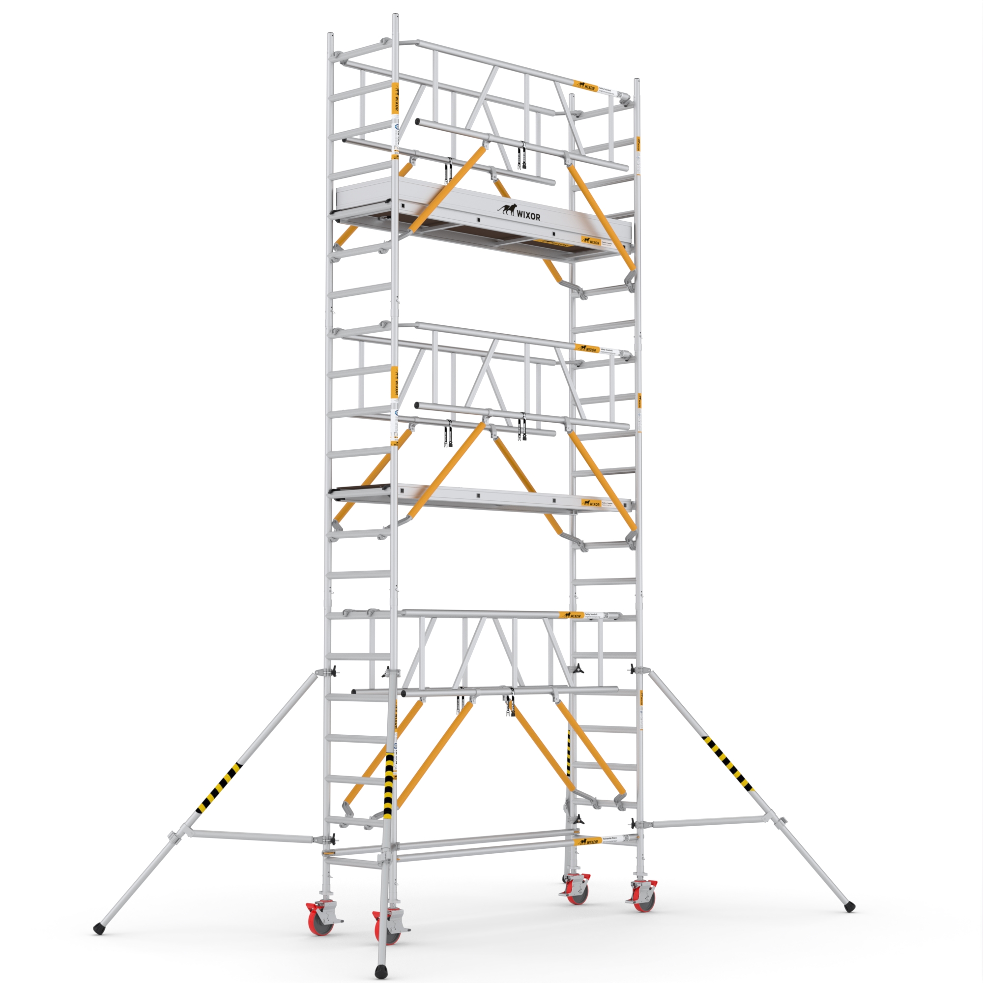 De Wixor rolsteiger heeft een universele maatvoering, wat betekent dat de onderdelen op een Wixor, Euroscaffold, ASC of Altrex rolsteiger passen.