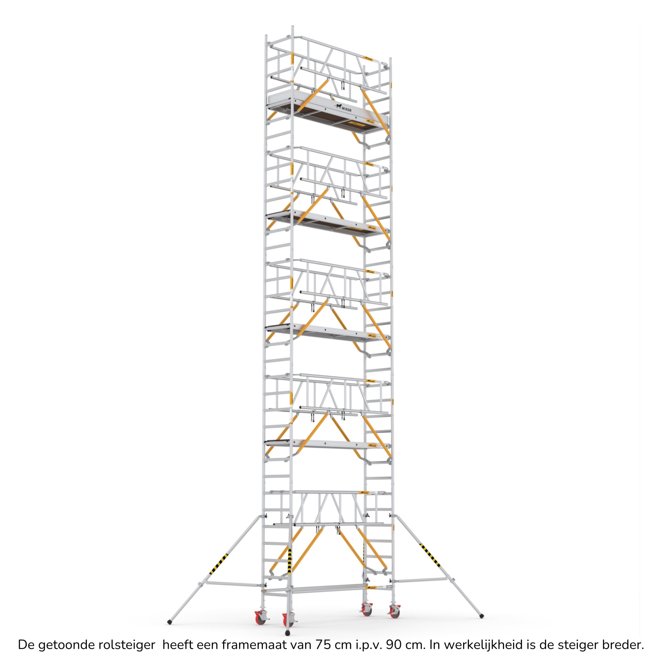 Wixor rolsteiger 190 x 75cm met schoren en 2x een voorloopleuning – 9 meter werkhoogte
