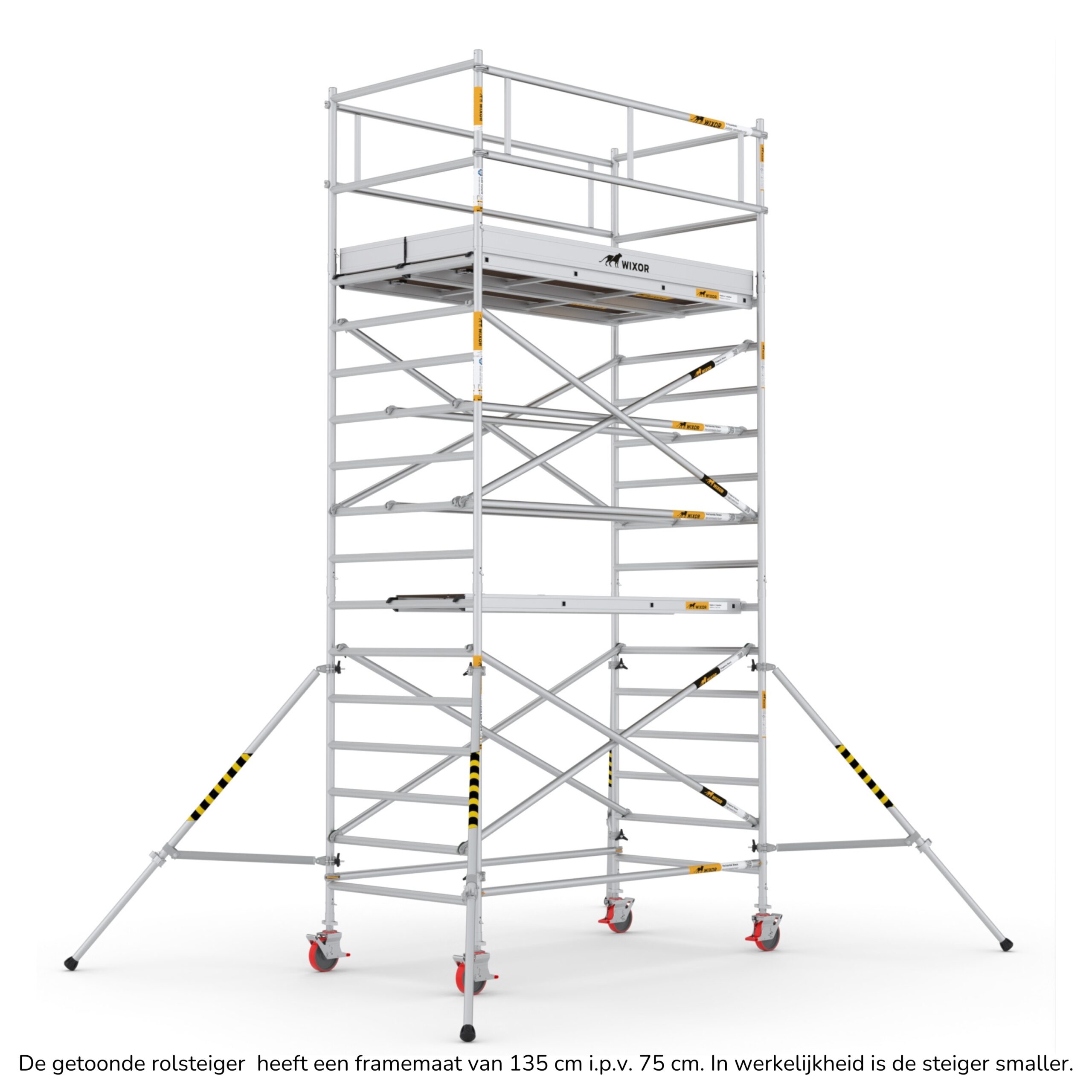 De Wixor rolsteiger heeft een universele maatvoering, wat betekent dat de onderdelen op een Wixor, Euroscaffold, ASC of Altrex rolsteiger passen.