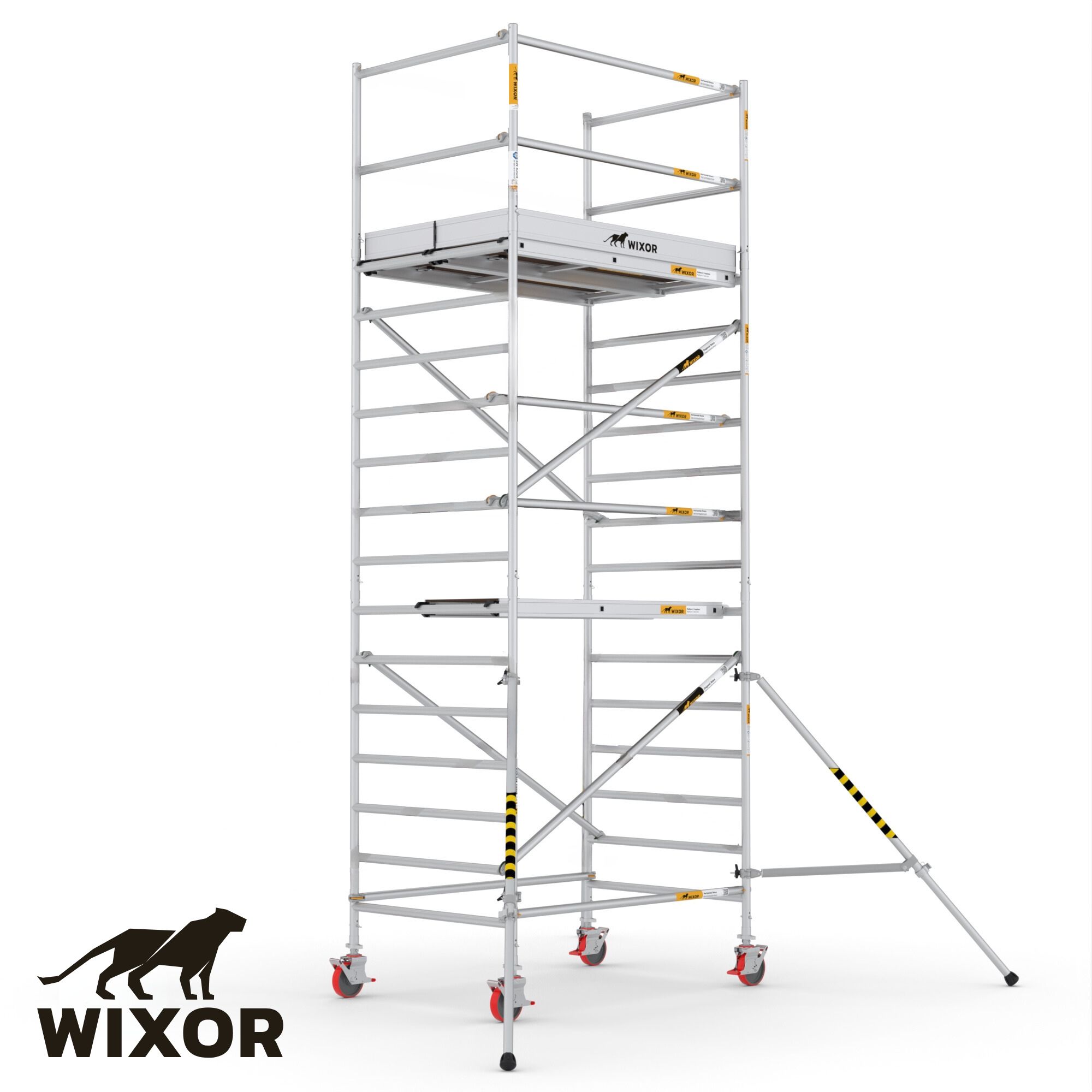 De Wixor rolsteiger heeft een universele maatvoering, wat betekent dat de onderdelen op een Wixor, Euroscaffold, ASC of Altrex rolsteiger passen.