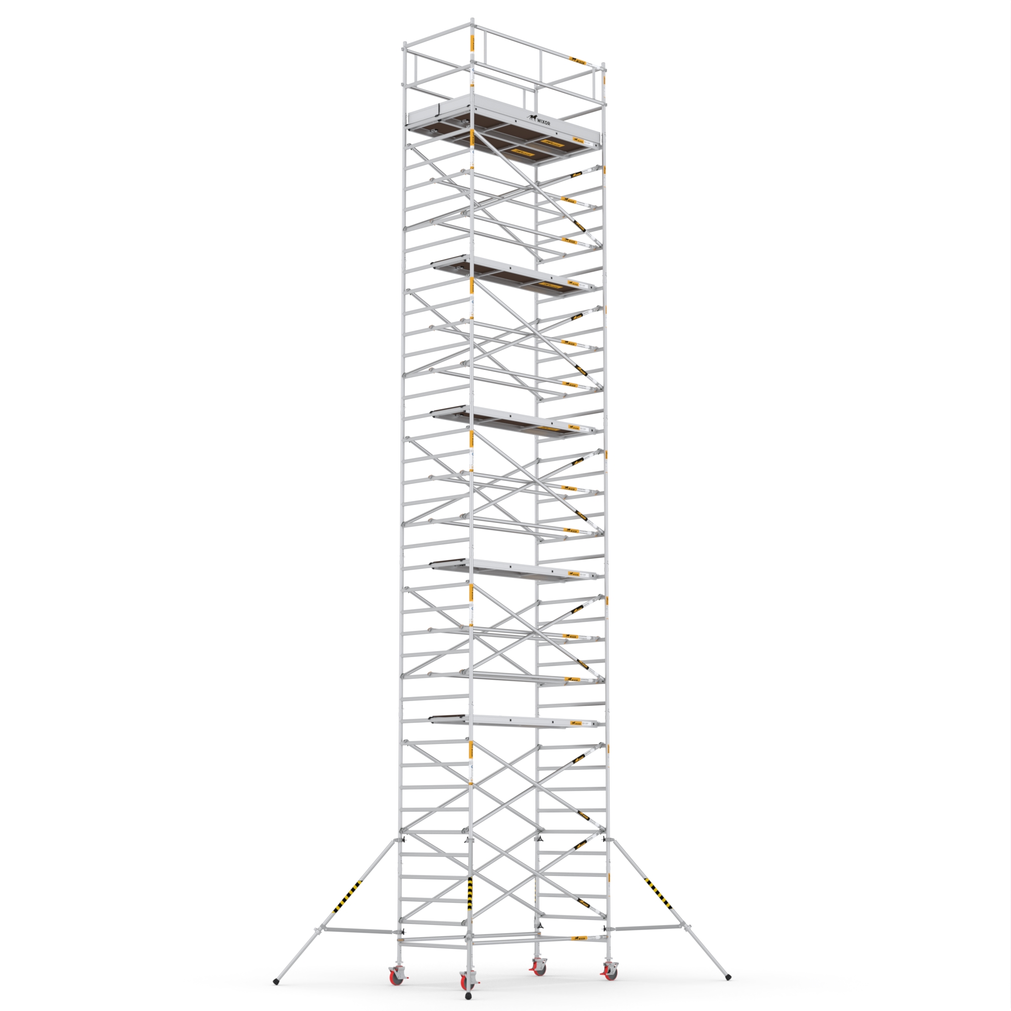 De rolsteiger is volledig uitgevoerd met voorloopleuningen, zodat je deze extra veilig en tot 40% sneller kunt opbouwen.