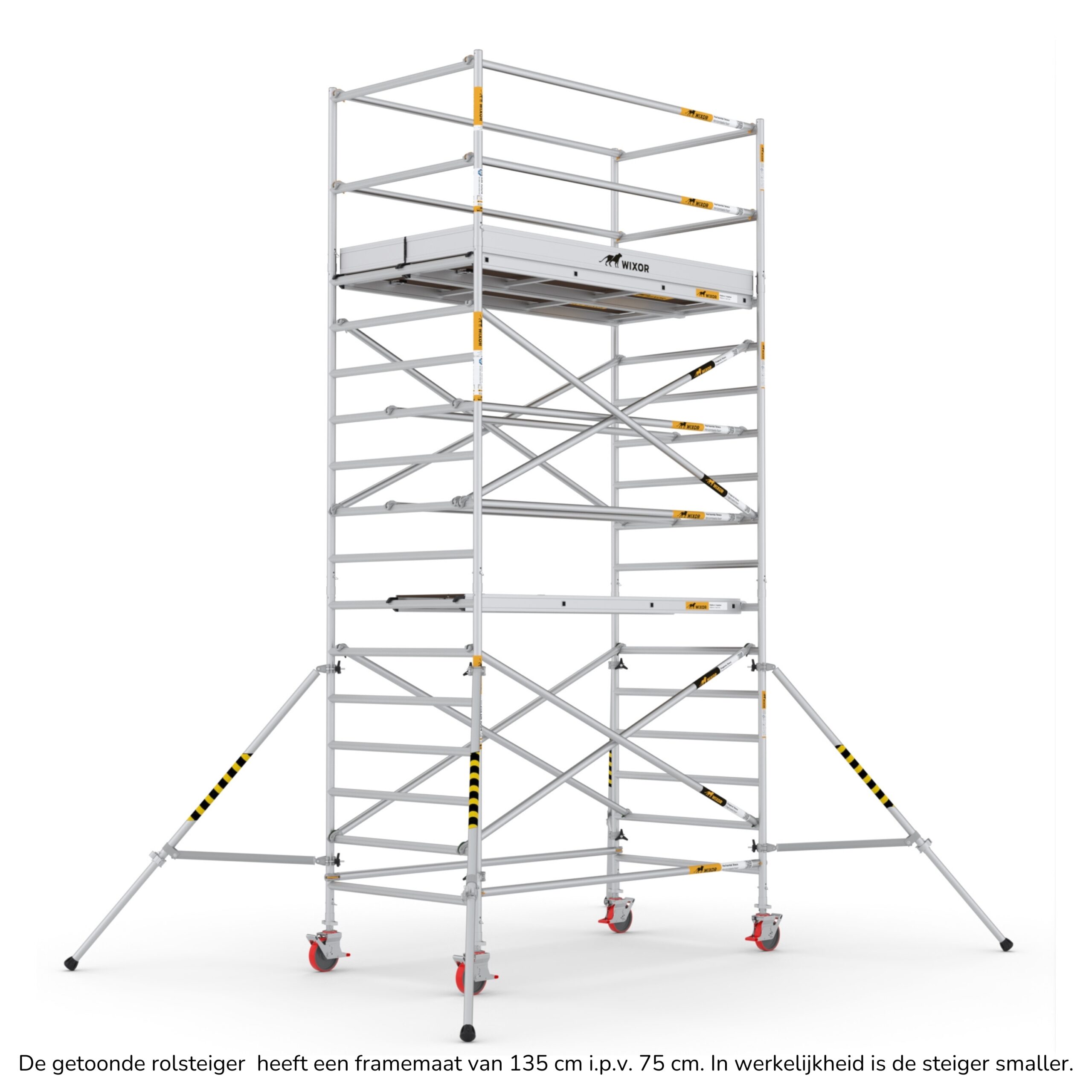 De Wixor rolsteiger heeft een universele maatvoering, wat betekent dat de onderdelen op een Wixor, Euroscaffold, ASC of Altrex rolsteiger passen.