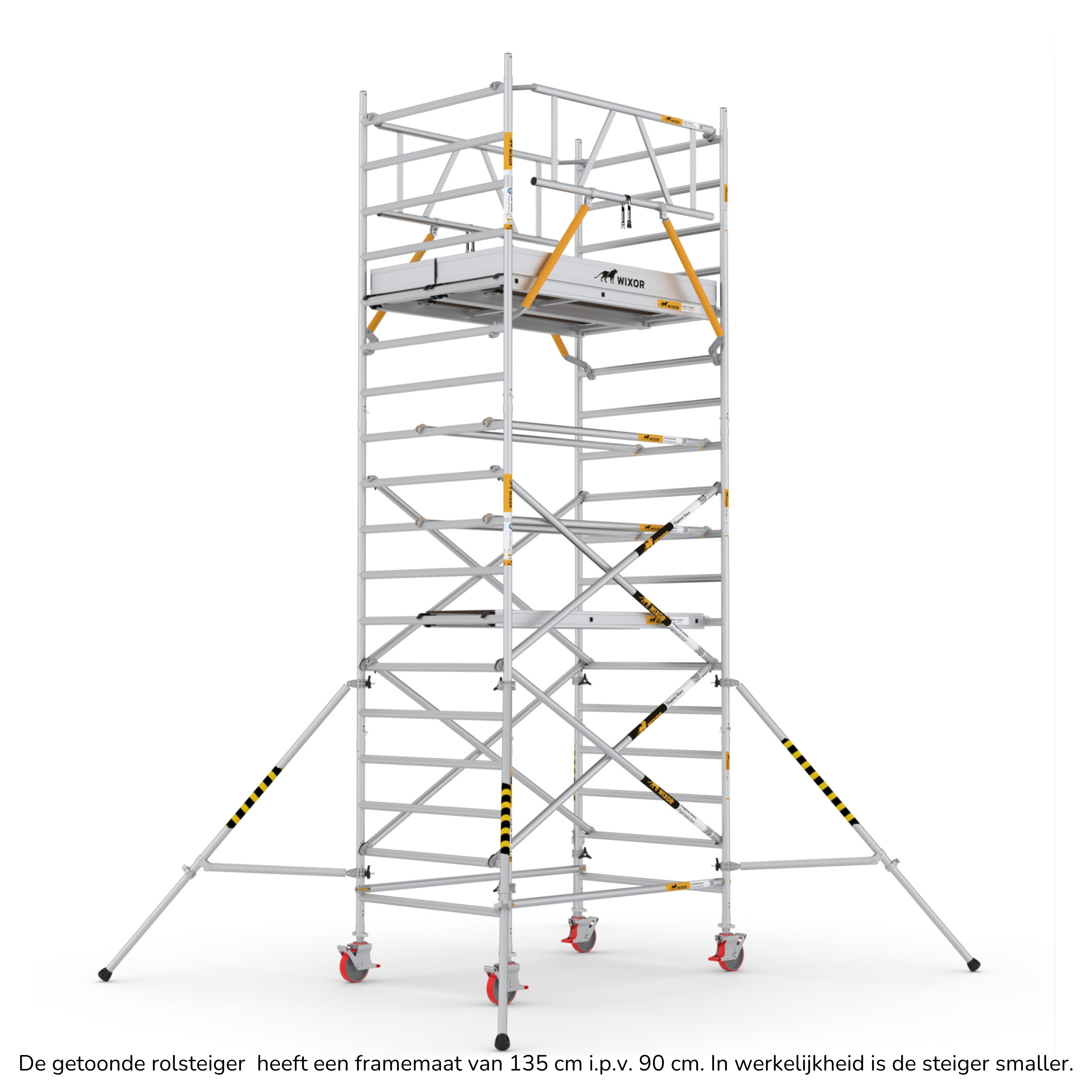 De Wixor rolsteiger heeft een universele maatvoering, wat betekent dat de onderdelen op een Wixor, Euroscaffold, ASC of Altrex rolsteiger passen.