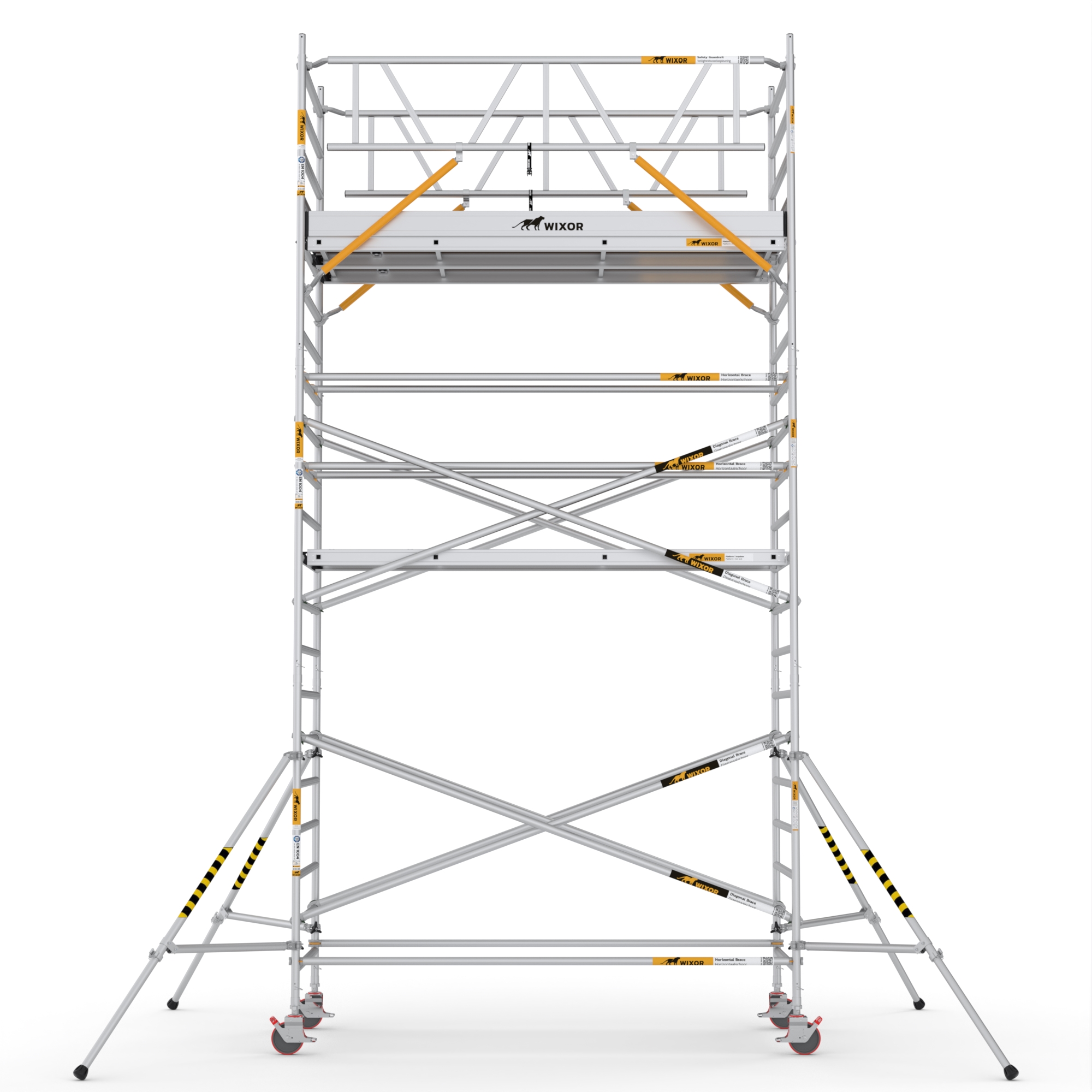 De Wixor rolsteiger heeft een universele maatvoering, wat betekent dat de onderdelen op een Wixor, Euroscaffold, ASC of Altrex rolsteiger passen.