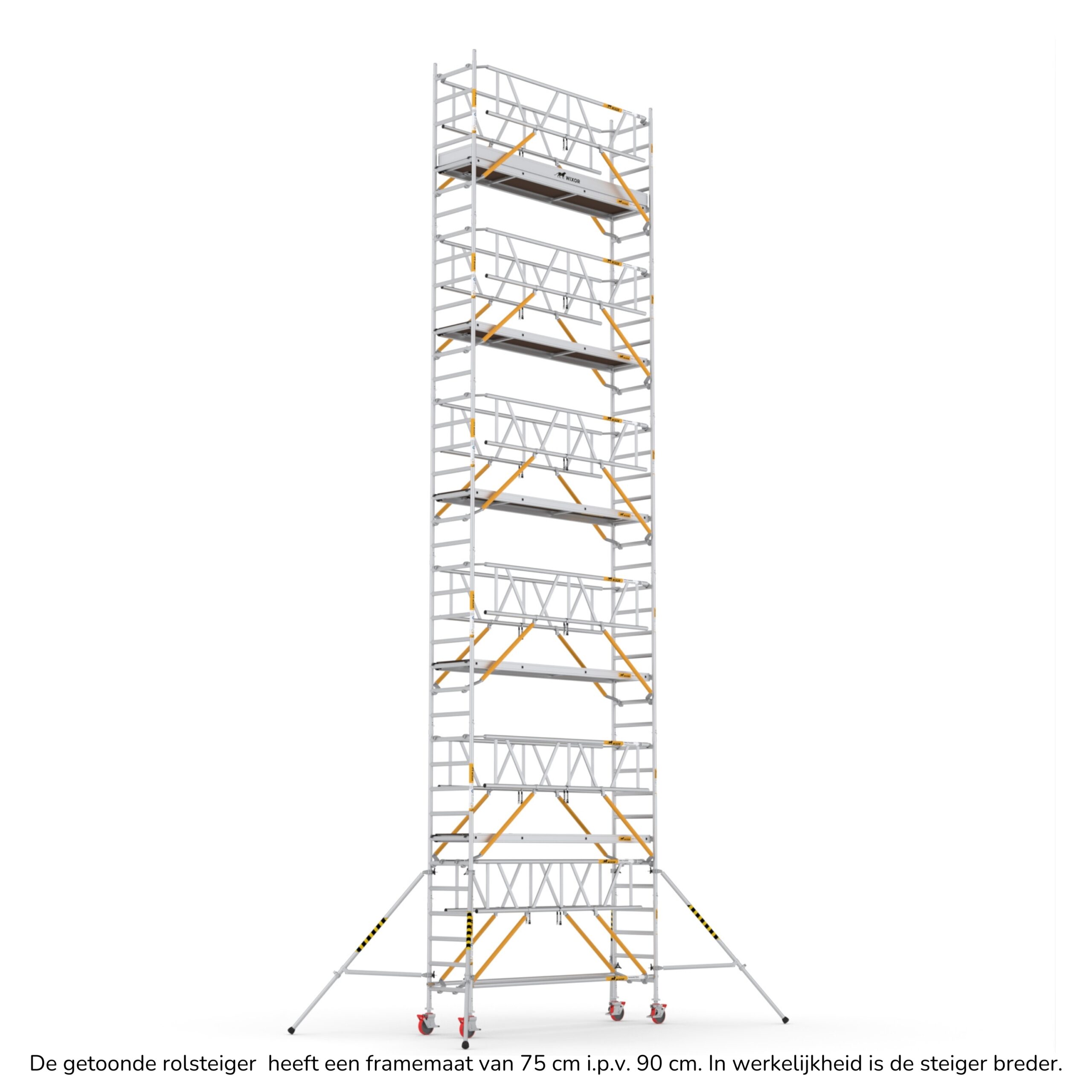 Wixor rolsteiger 305 x 75cm met schoren en 2x een dubbele horizontaalschoor – 13 meter werkhoogte