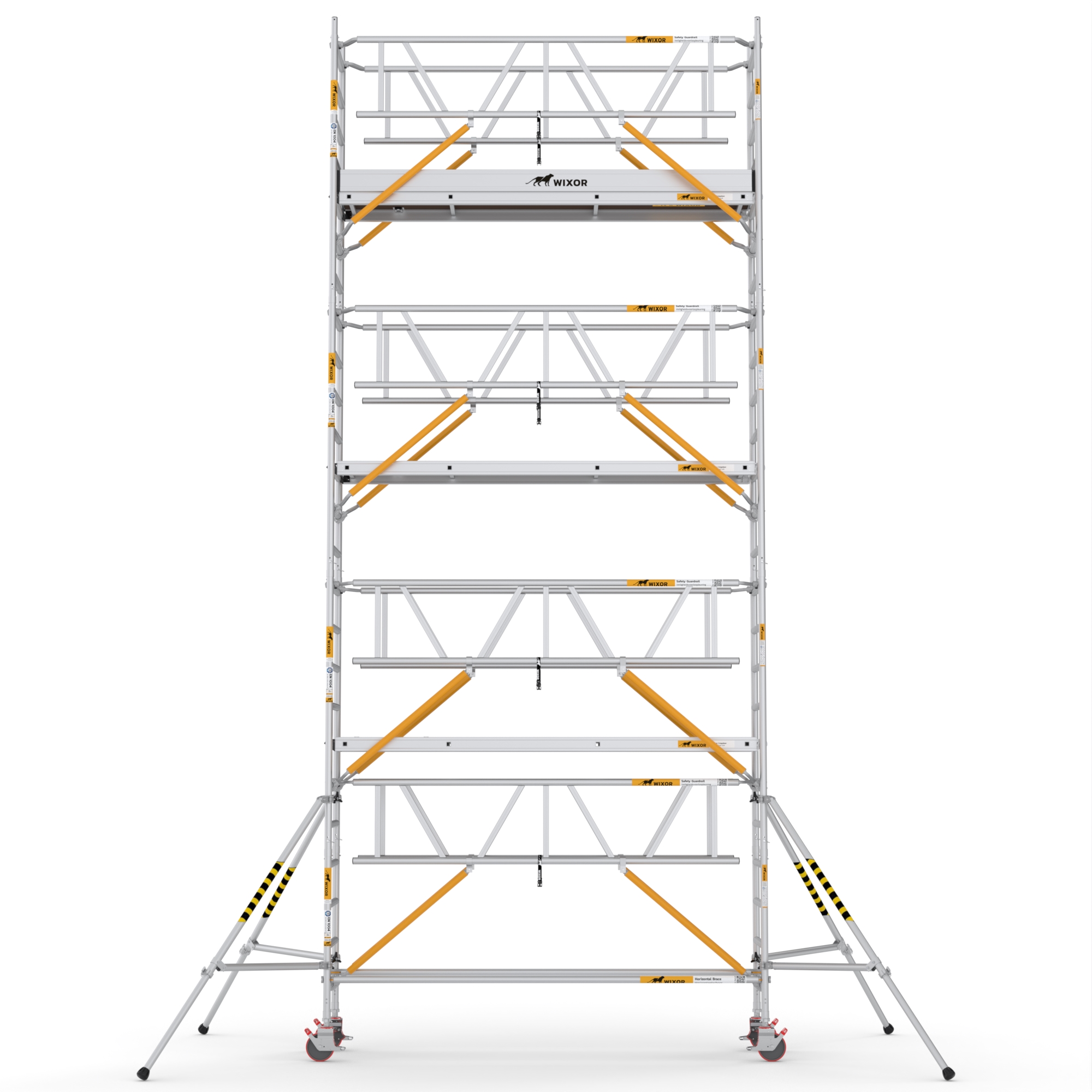 De Wixor rolsteiger heeft een universele maatvoering, wat betekent dat de onderdelen op een Wixor, Euroscaffold, ASC of Altrex rolsteiger passen.