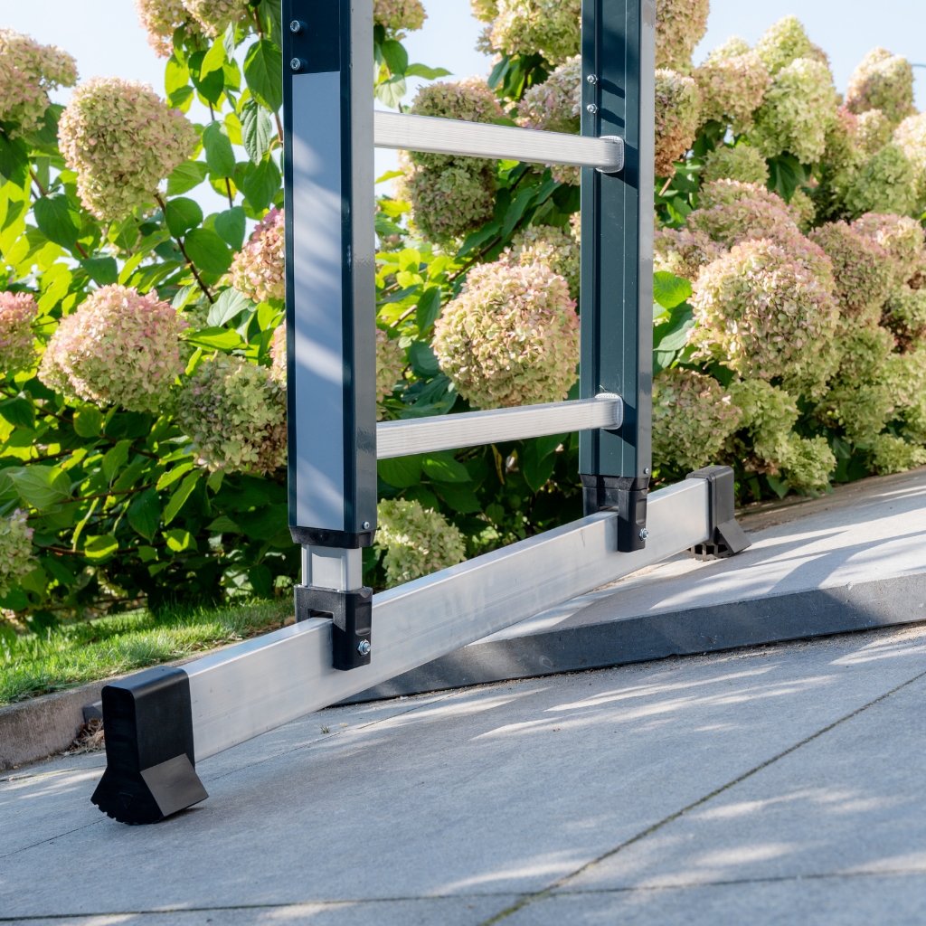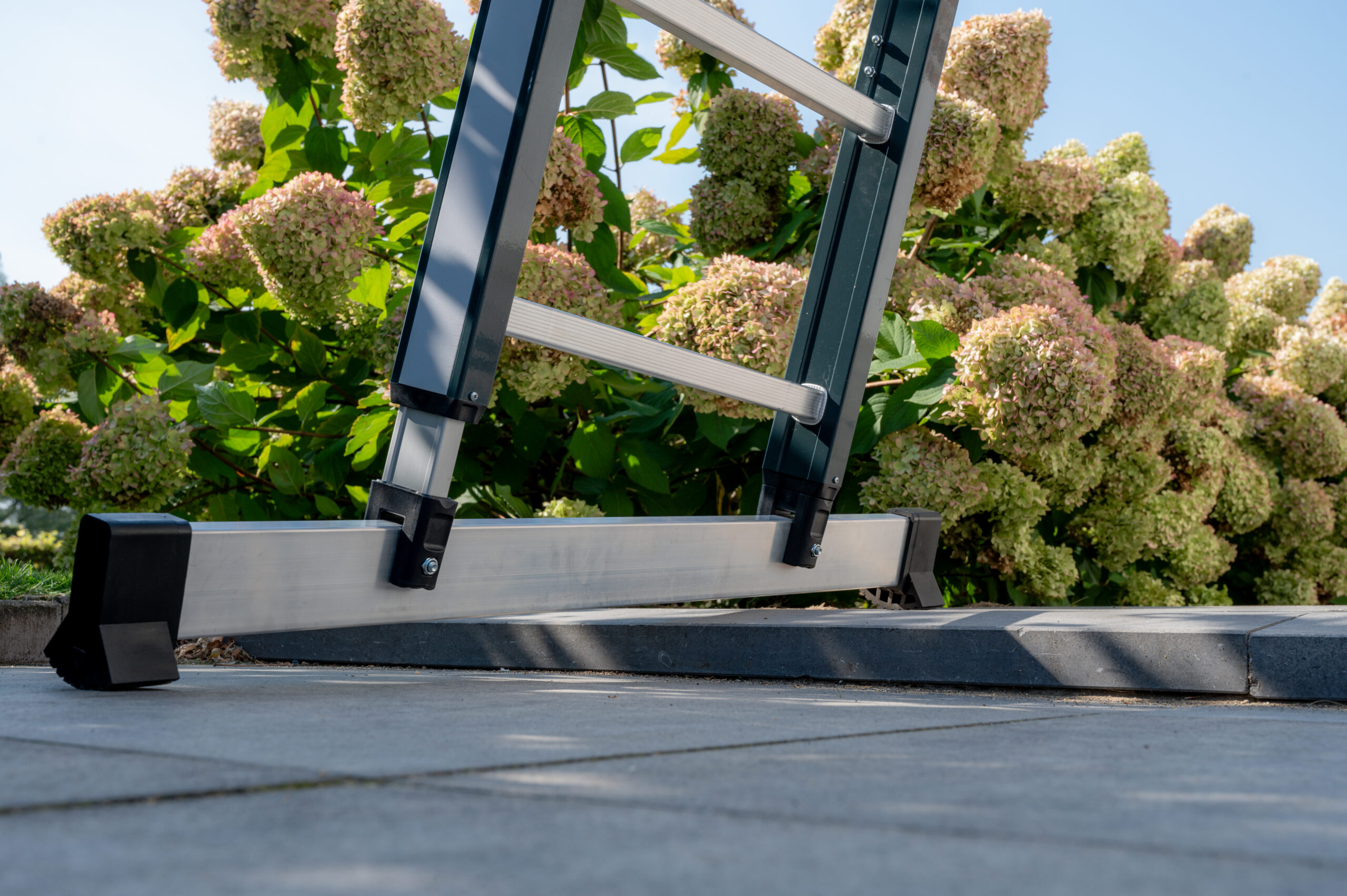 Dankzij het innovatieve Smart Level Systeem staat de ladder altijd stabiel, zelfs op schuine ondergronden tot 19 cm hoogteverschil. Geen wiebelige ladder meer – je werkt direct veilig en met vertrouwen, waar je de ladder ook neerzet.