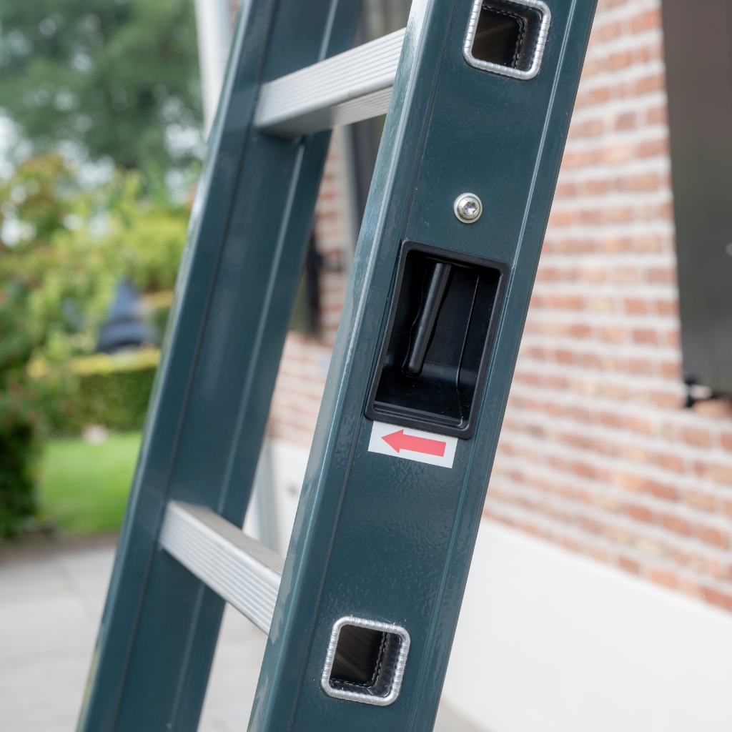 De ladder is uitgerust met onderhoudsvrije, groenzwart gecoate bomen, waardoor je geen last meer hebt van koude of vuile handen. De sporten zijn ontworpen met een hoog draagvermogen van 150 kg en bieden een breed stavlak van hoogwaardige aluminium legering voor extra comfort en stevigheid.