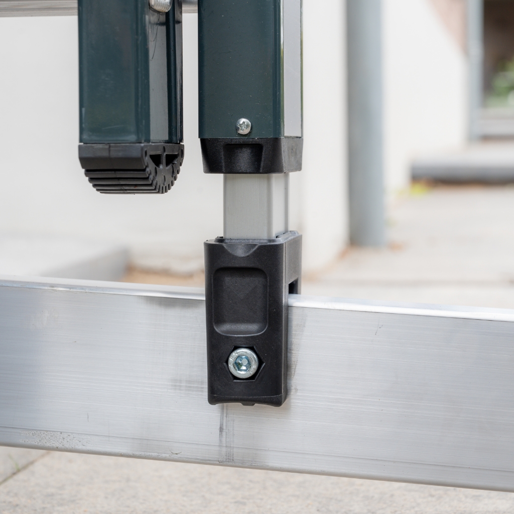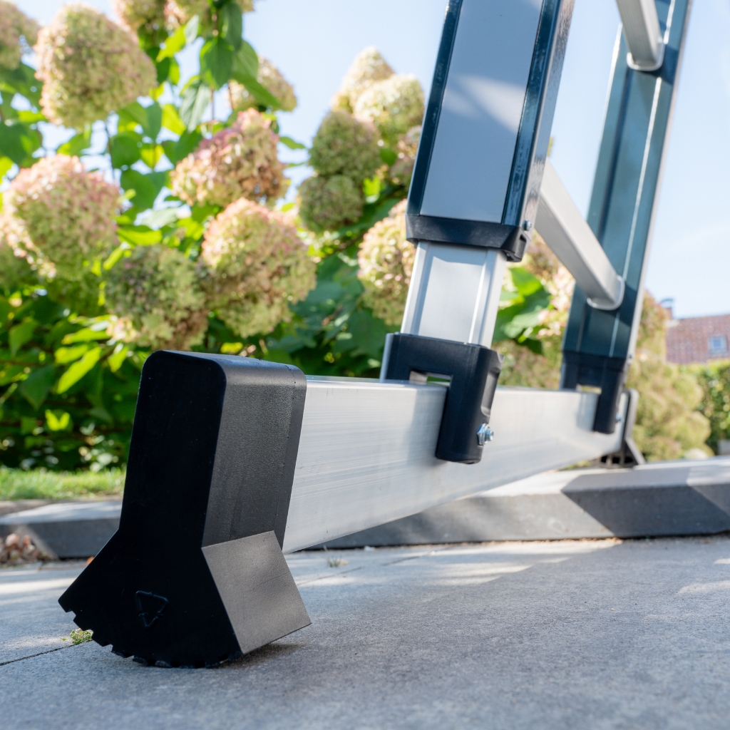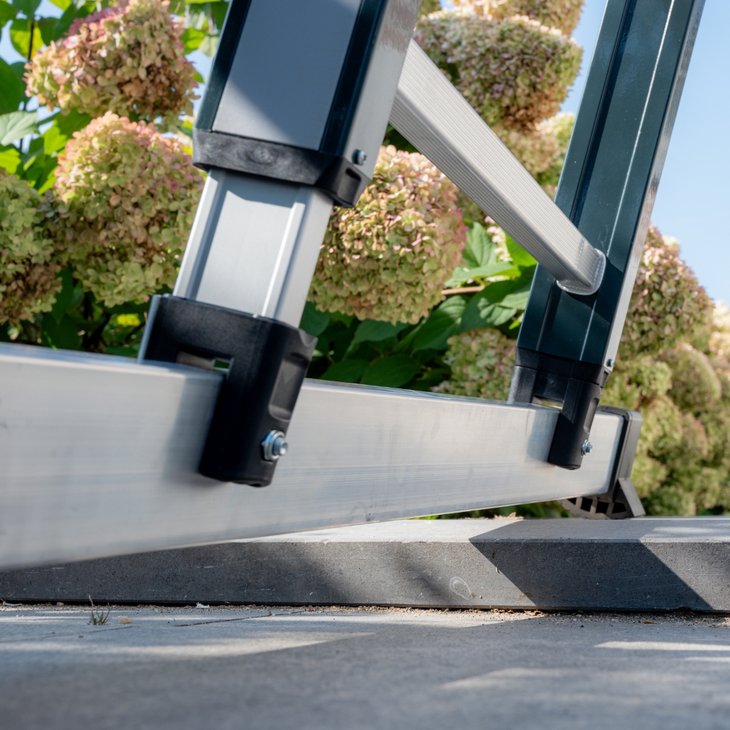 Dankzij het innovatieve Smart Level Systeem staat de ladder altijd stabiel, zelfs op schuine ondergronden tot 19 cm hoogteverschil. Geen wiebelige ladder meer – je werkt direct veilig en met vertrouwen, waar je de ladder ook neerzet.