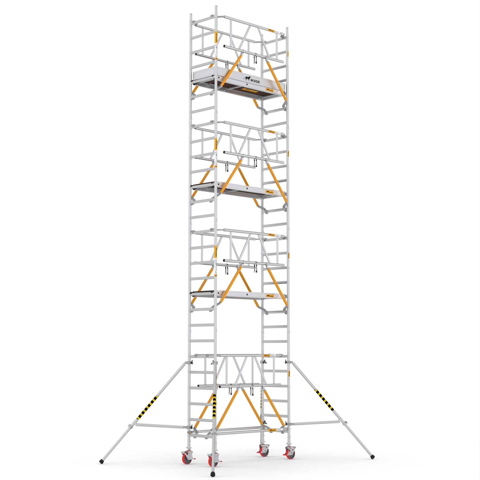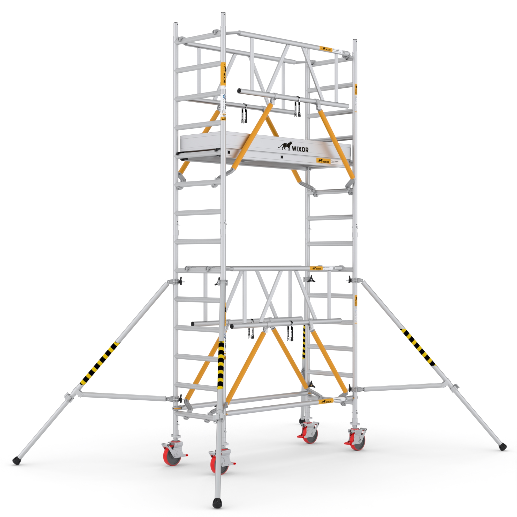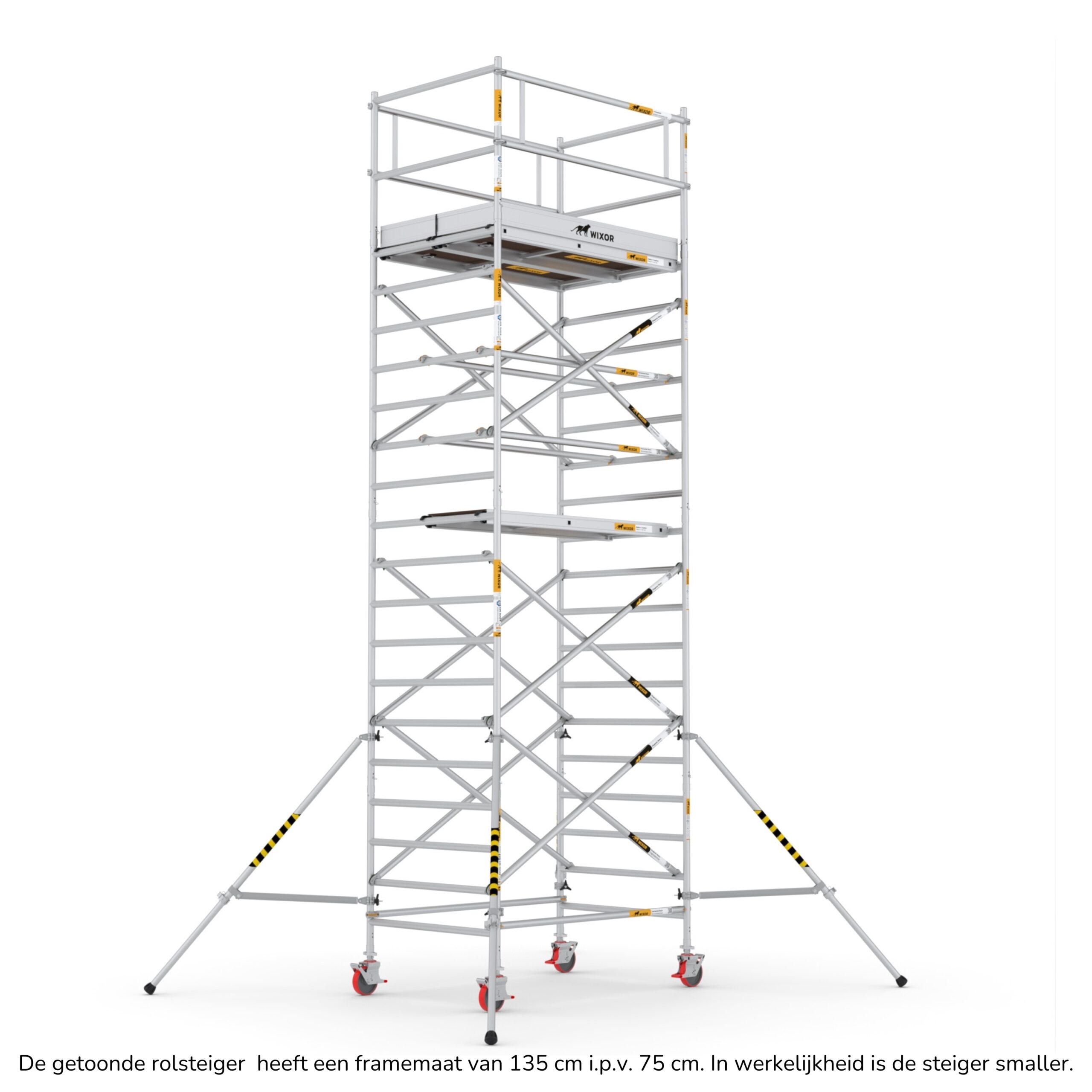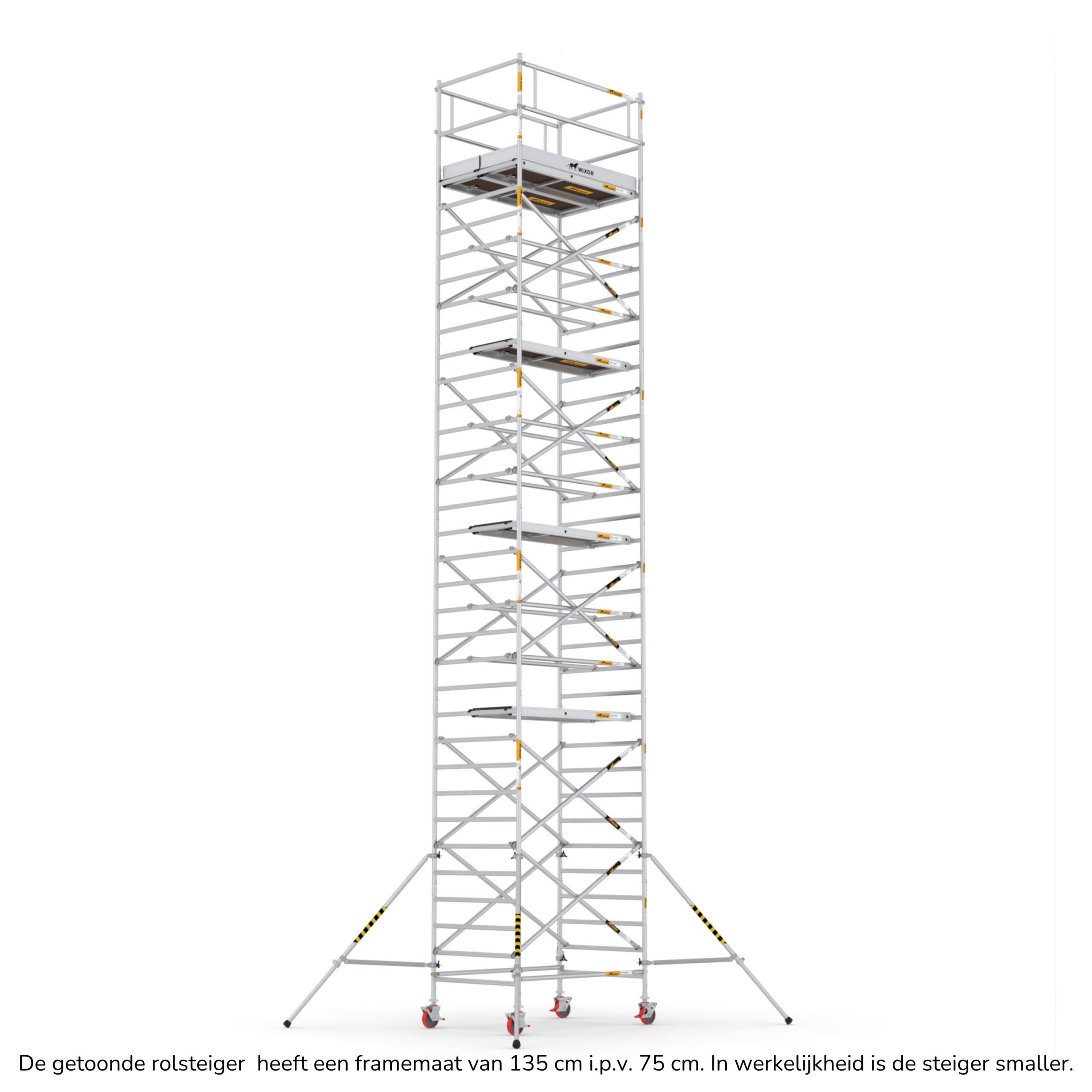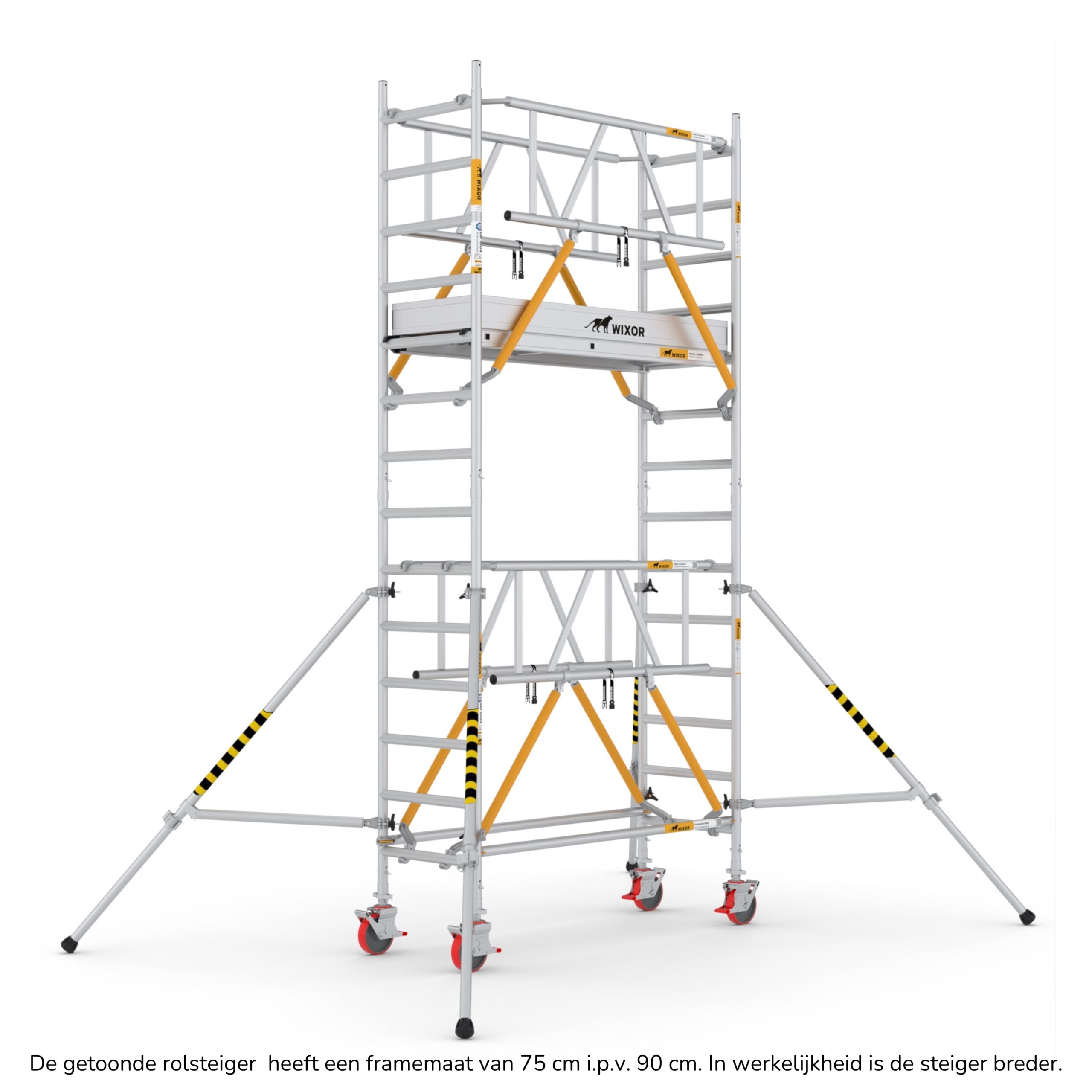 Wat deze rolsteigers onderscheidt, is de veelzijdigheid in opbouwmethoden. U heeft de keuze uit vier verschillende opbouwmethoden, waaronder veiligheidsvoorloopleuningen, schoren, schoren met 2x een veiligheidsvoorloopleuning bovenaan, en schoren met 2x een dubbele voorloopleuning bovenaan. Deze variatie stelt u in staat om de rolsteiger aan te passen aan de specifieke eisen van uw project, terwijl u toch kunt vertrouwen op de hoogste normen van veiligheid en stabiliteit.