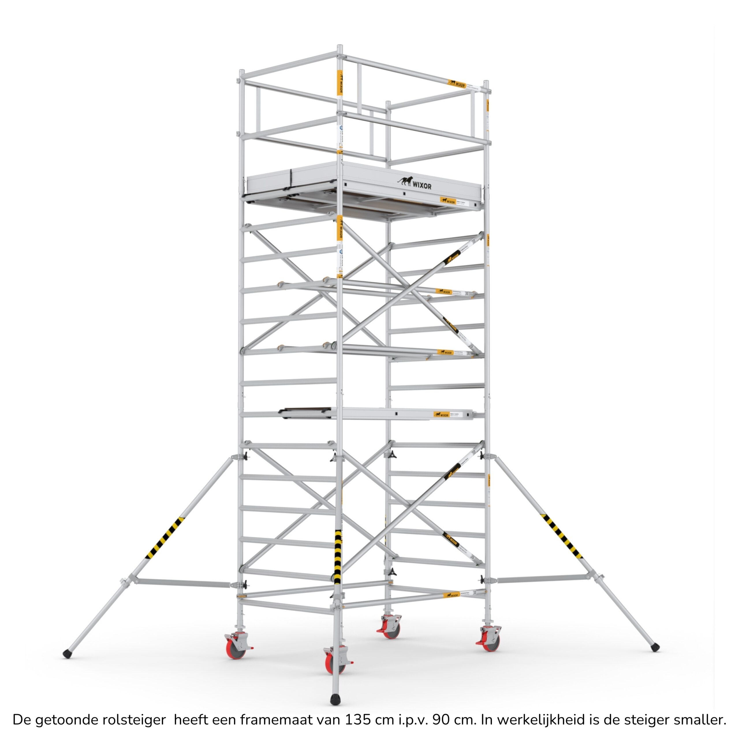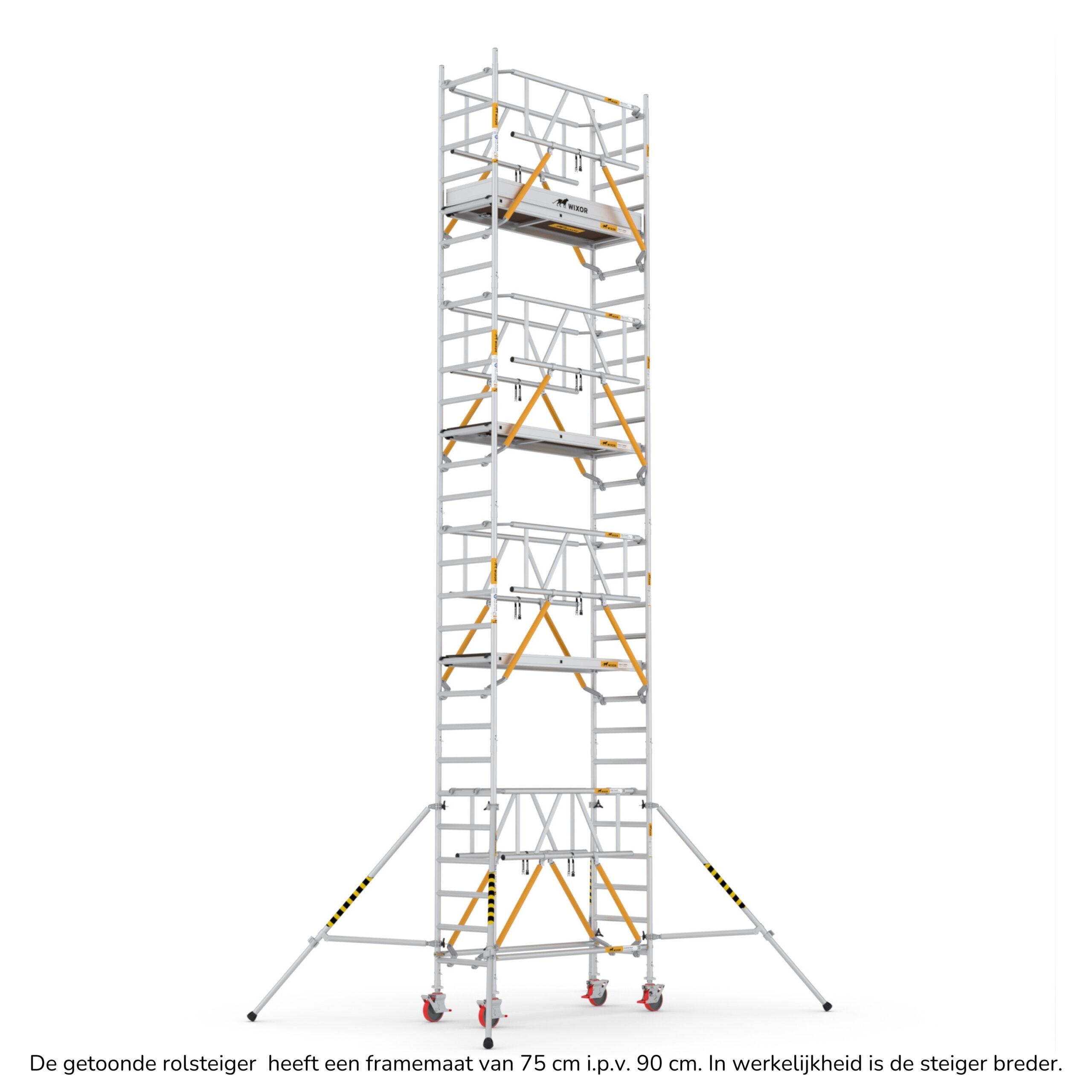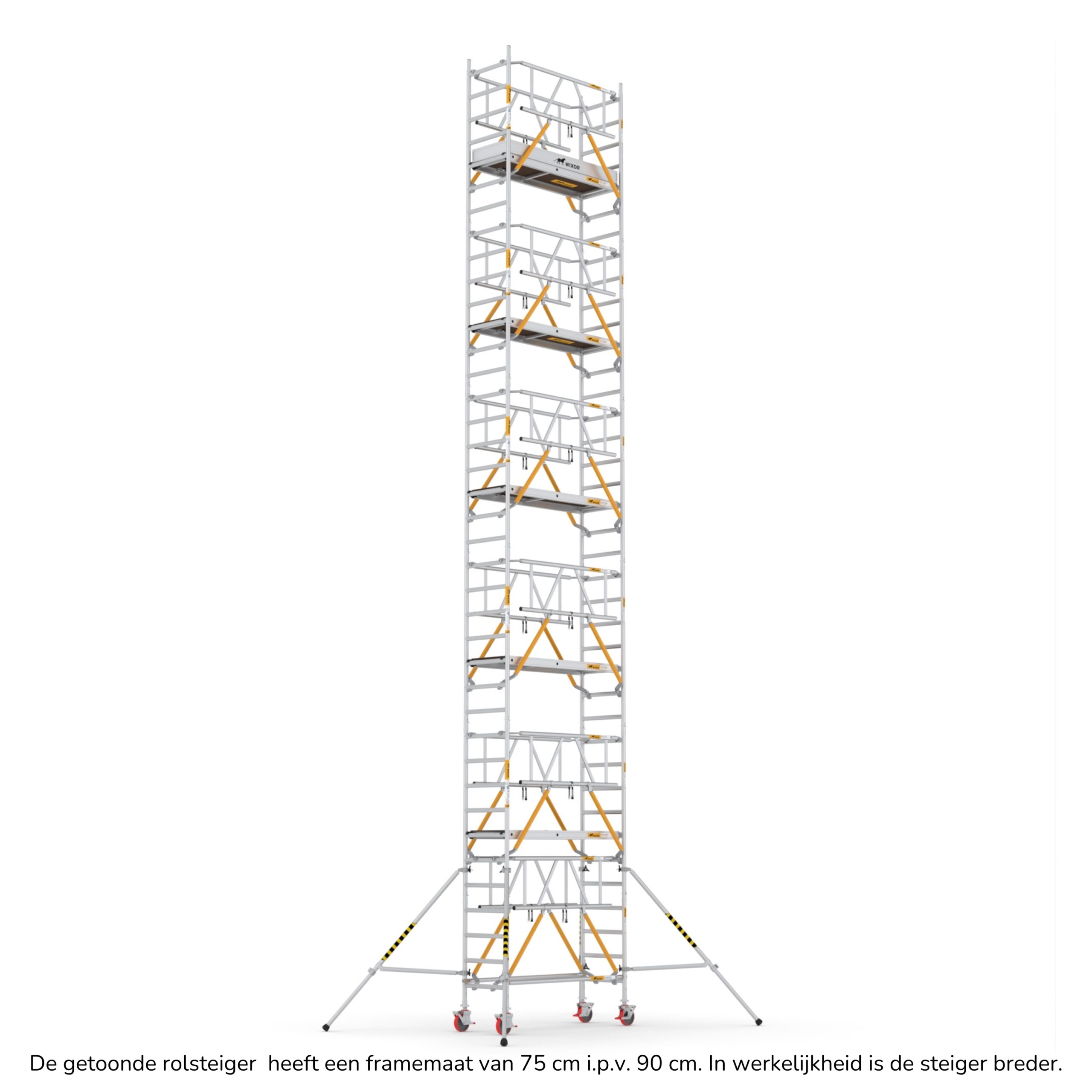 Wat deze rolsteigers onderscheidt, is de veelzijdigheid in opbouwmethoden. U heeft de keuze uit vier verschillende opbouwmethoden, waaronder veiligheidsvoorloopleuningen, schoren, schoren met 2x een veiligheidsvoorloopleuning bovenaan, en schoren met 2x een dubbele voorloopleuning bovenaan. Deze variatie stelt u in staat om de rolsteiger aan te passen aan de specifieke eisen van uw project, terwijl u toch kunt vertrouwen op de hoogste normen van veiligheid en stabiliteit.