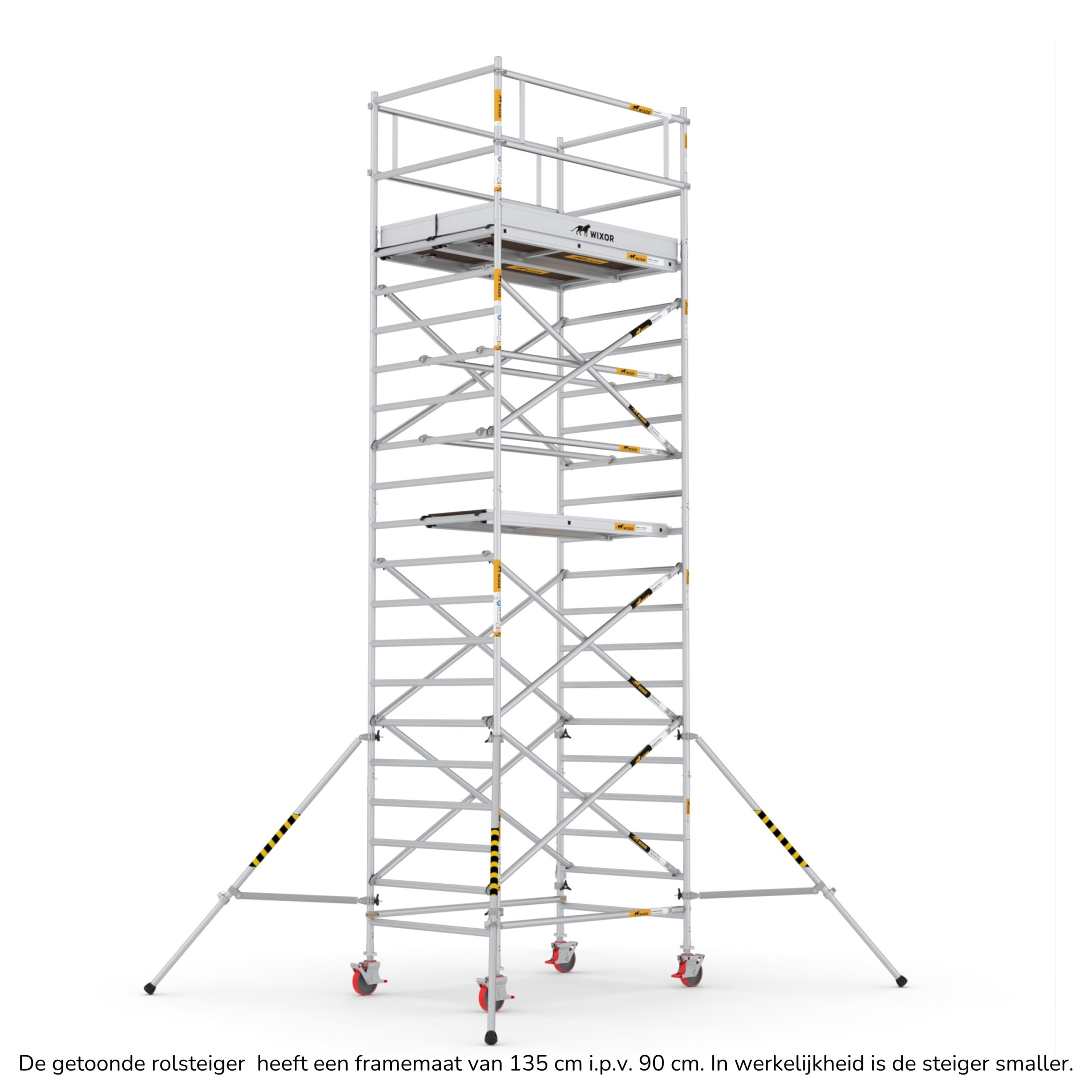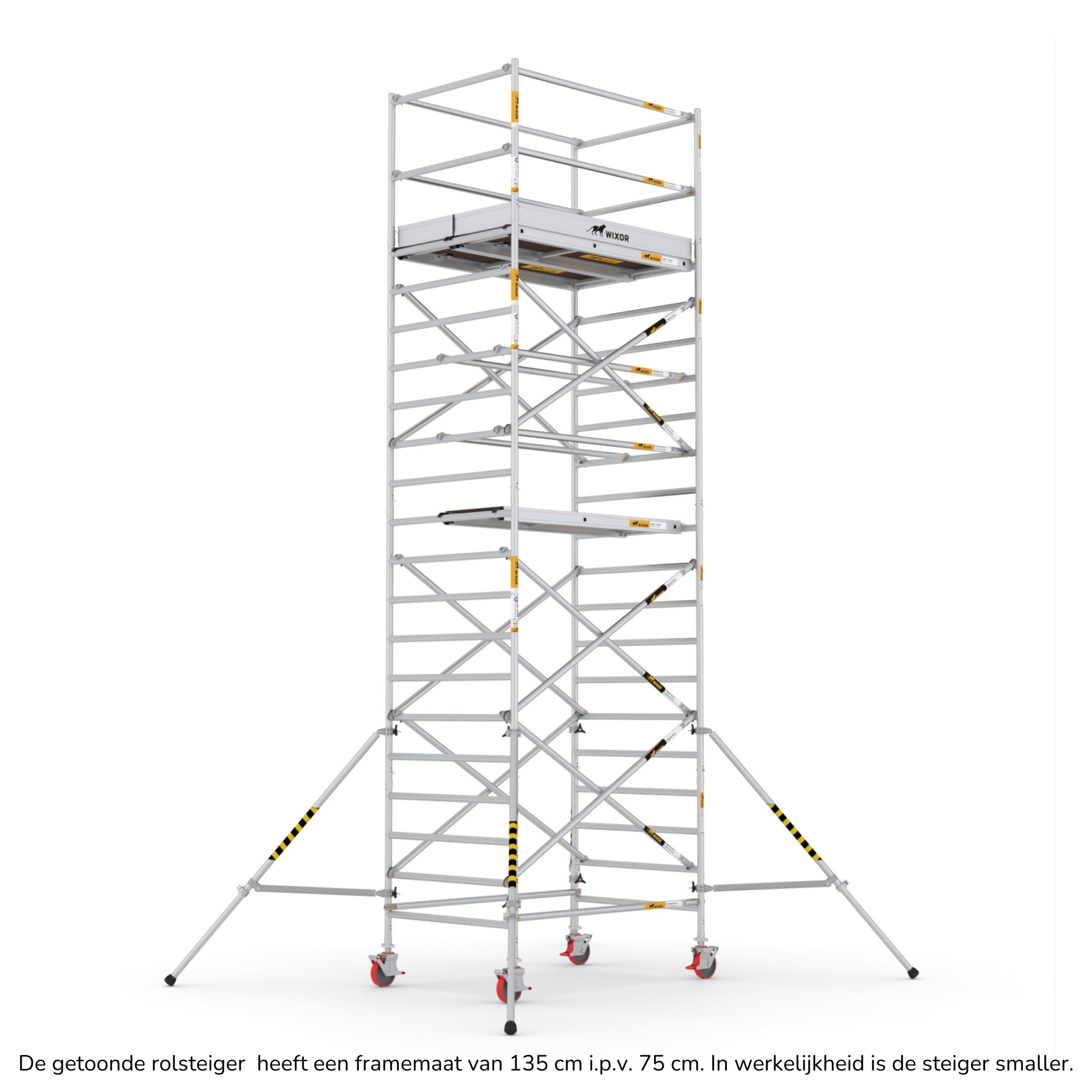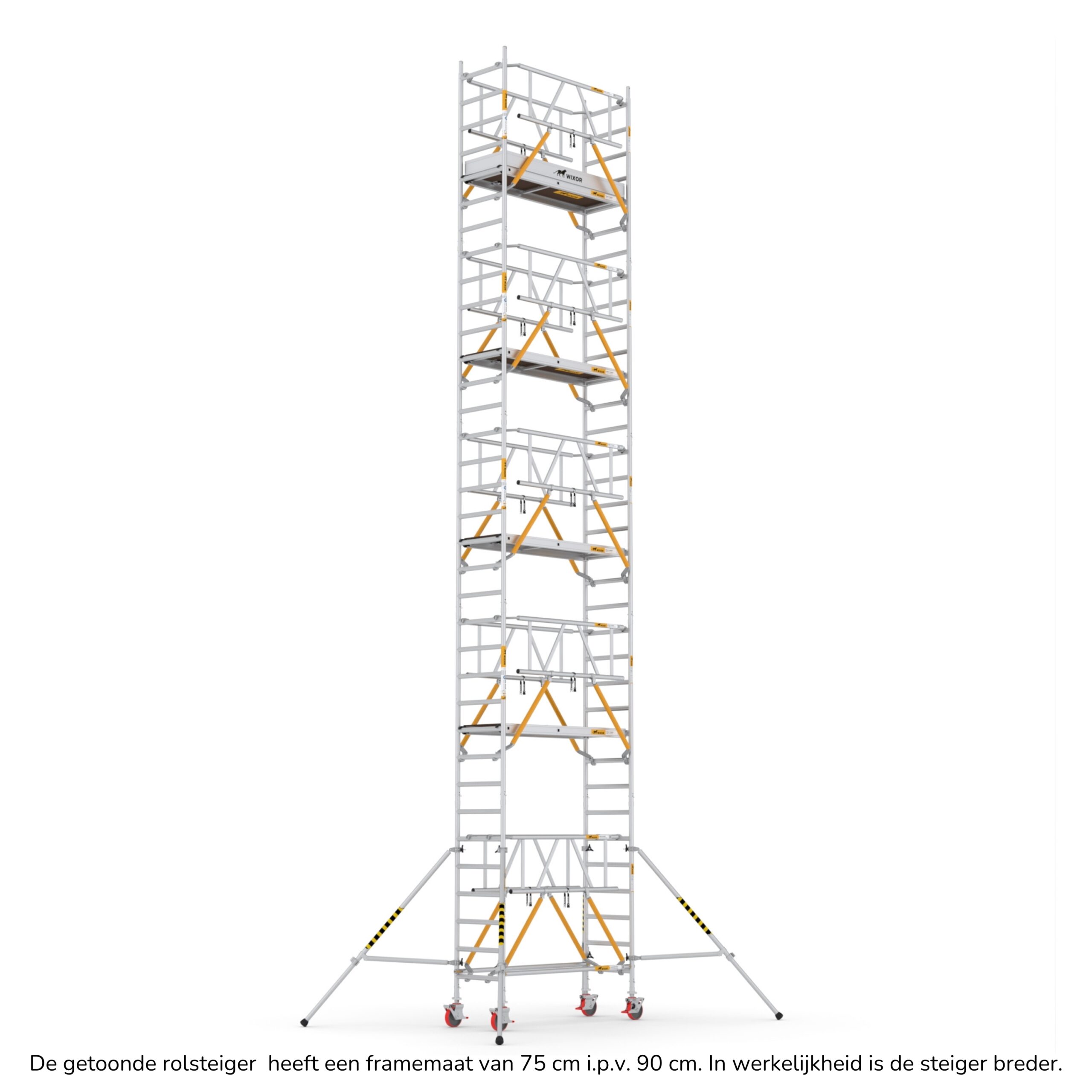 Wat deze rolsteigers onderscheidt, is de veelzijdigheid in opbouwmethoden. U heeft de keuze uit vier verschillende opbouwmethoden, waaronder veiligheidsvoorloopleuningen, schoren, schoren met 2x een veiligheidsvoorloopleuning bovenaan, en schoren met 2x een dubbele voorloopleuning bovenaan. Deze variatie stelt u in staat om de rolsteiger aan te passen aan de specifieke eisen van uw project, terwijl u toch kunt vertrouwen op de hoogste normen van veiligheid en stabiliteit.
