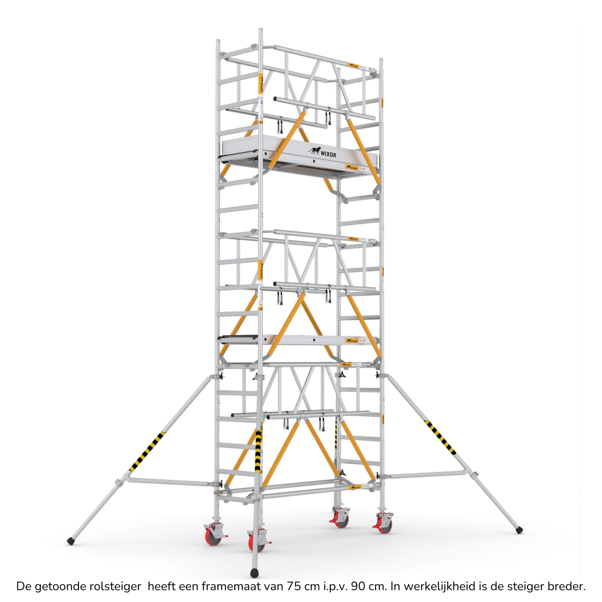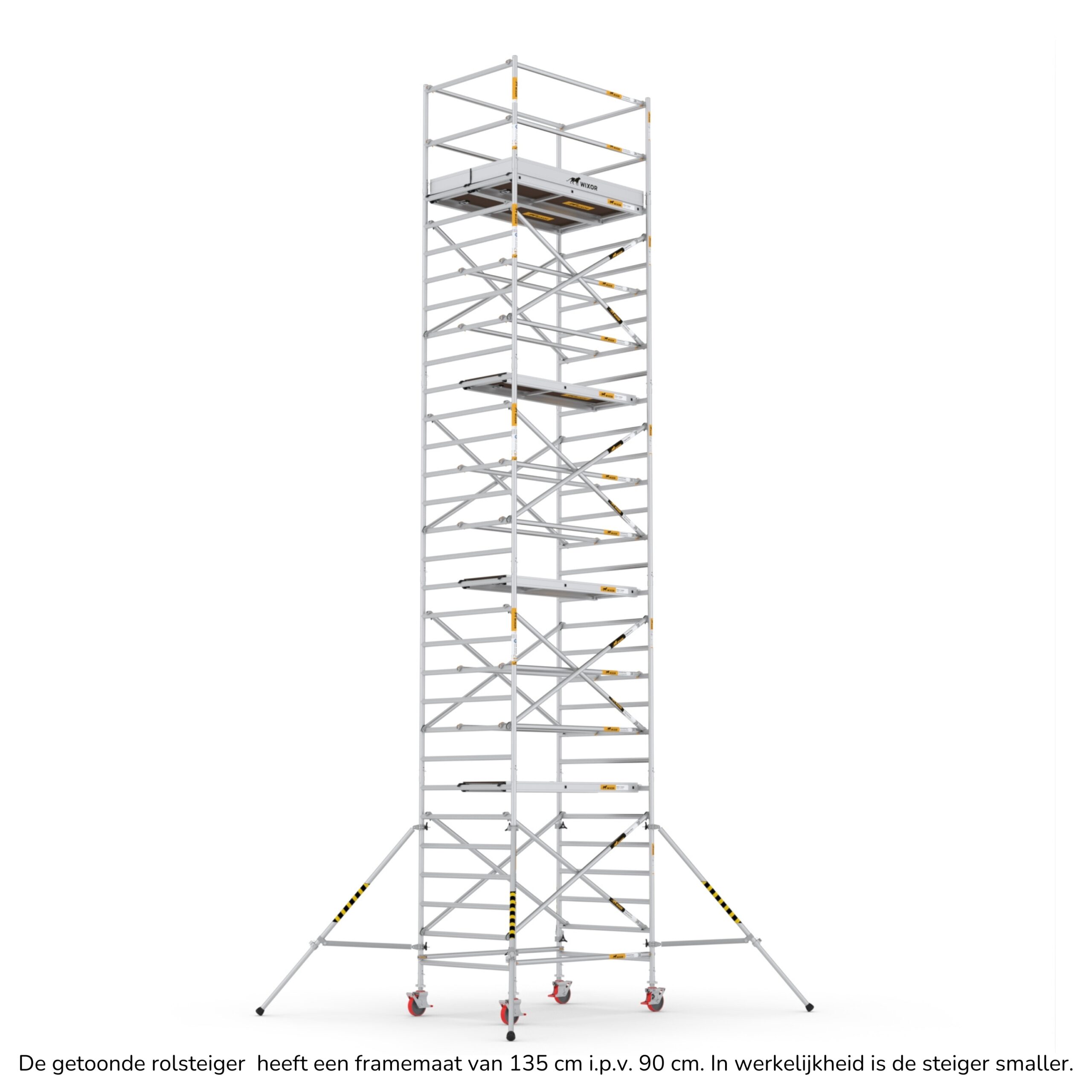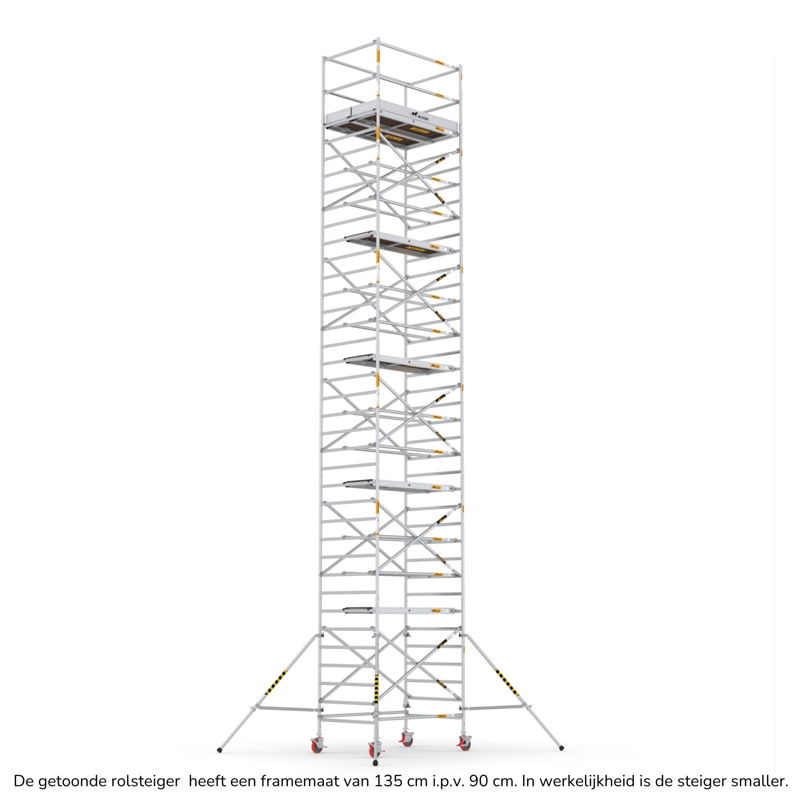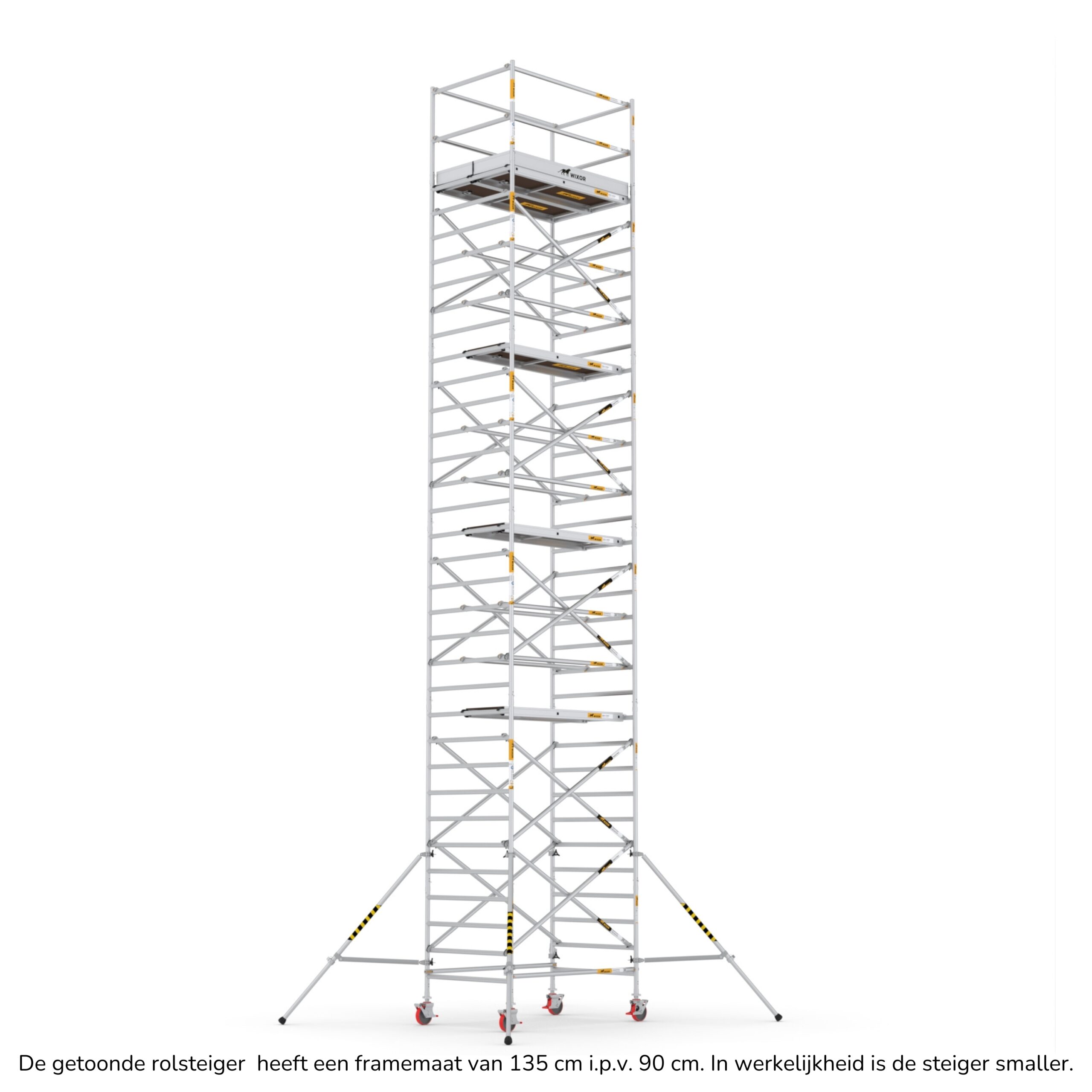 Wat deze rolsteigers onderscheidt, is de veelzijdigheid in opbouwmethoden. U heeft de keuze uit vier verschillende opbouwmethoden, waaronder veiligheidsvoorloopleuningen, schoren, schoren met 2x een veiligheidsvoorloopleuning bovenaan, en schoren met 2x een dubbele voorloopleuning bovenaan. Deze variatie stelt u in staat om de rolsteiger aan te passen aan de specifieke eisen van uw project, terwijl u toch kunt vertrouwen op de hoogste normen van veiligheid en stabiliteit.