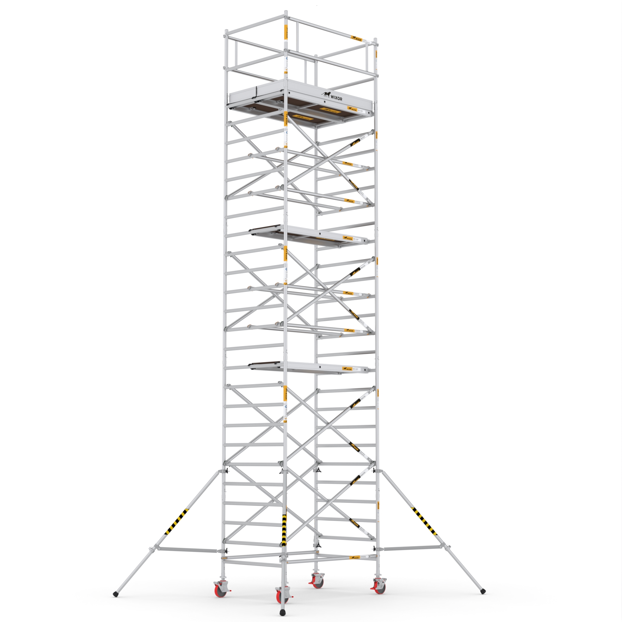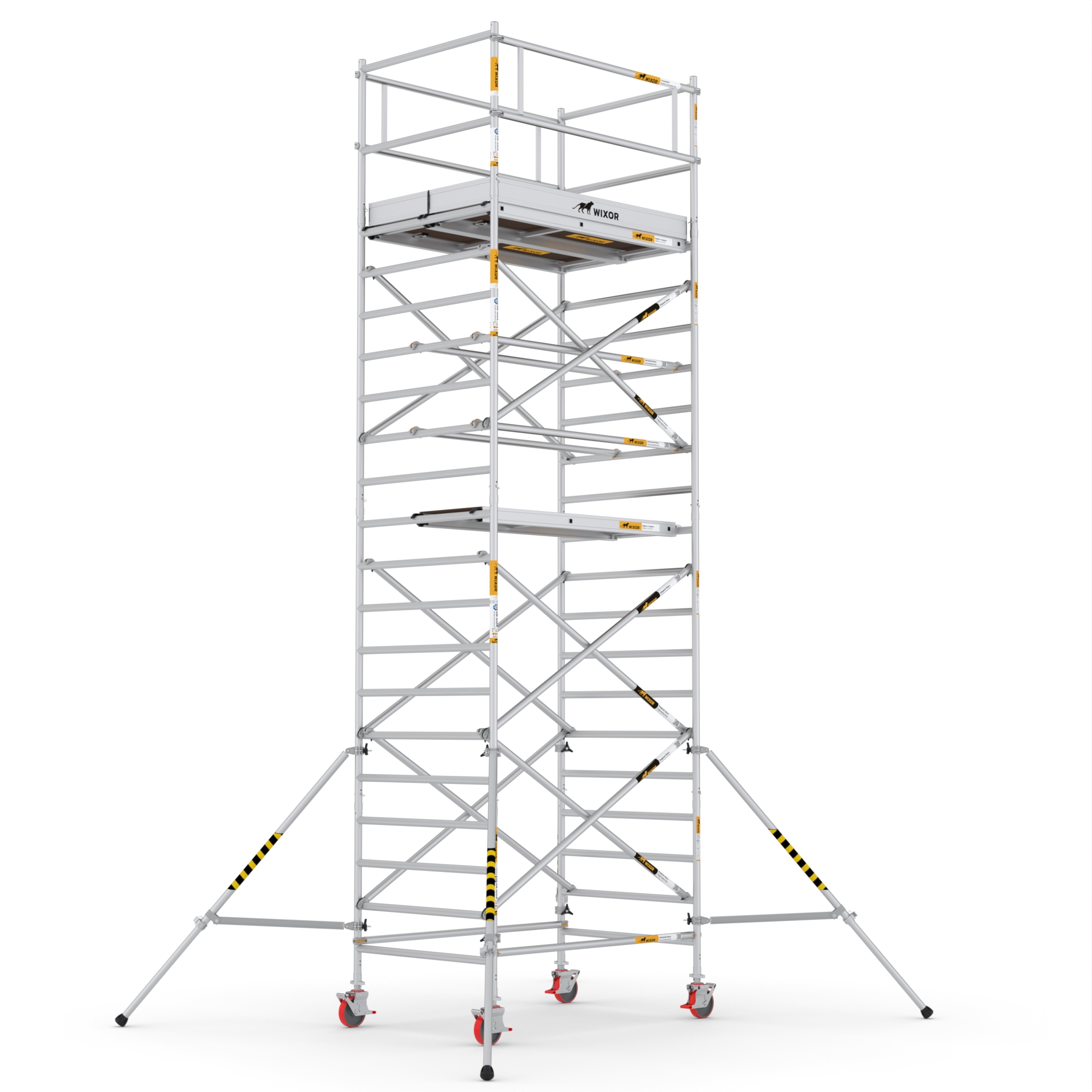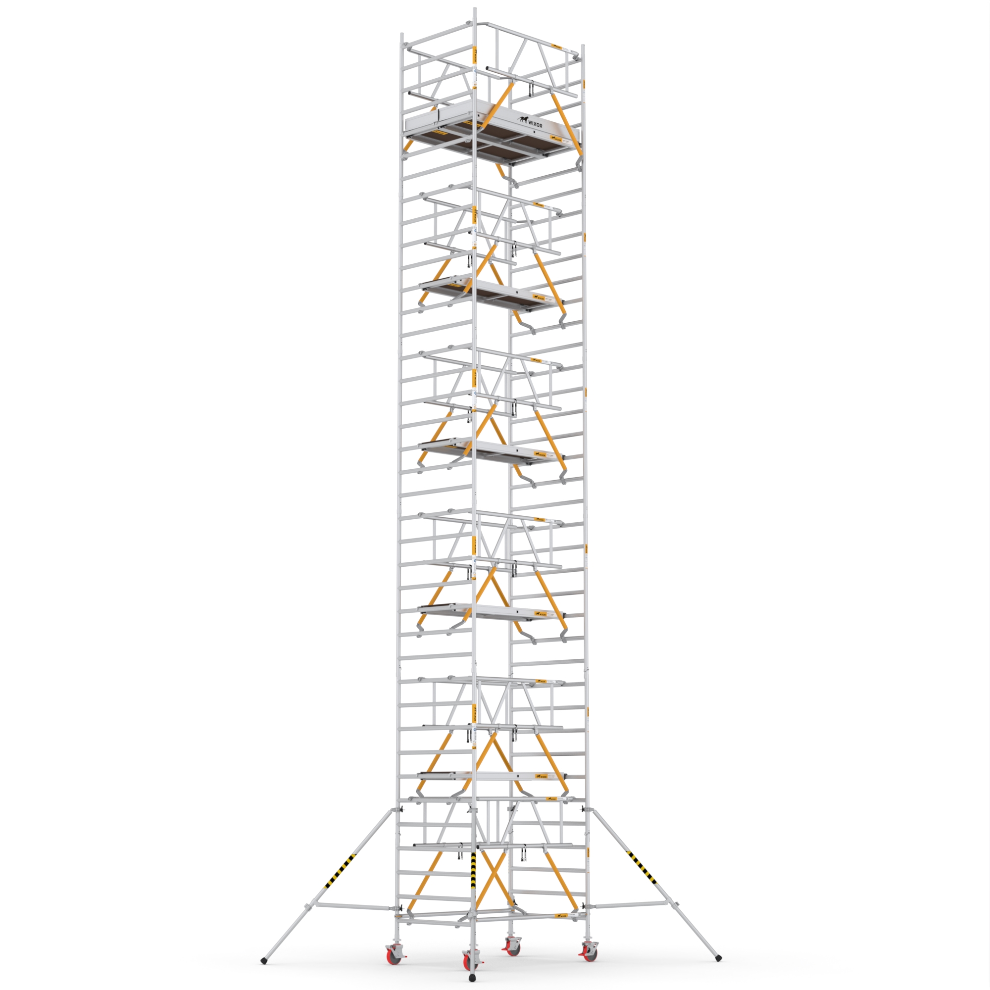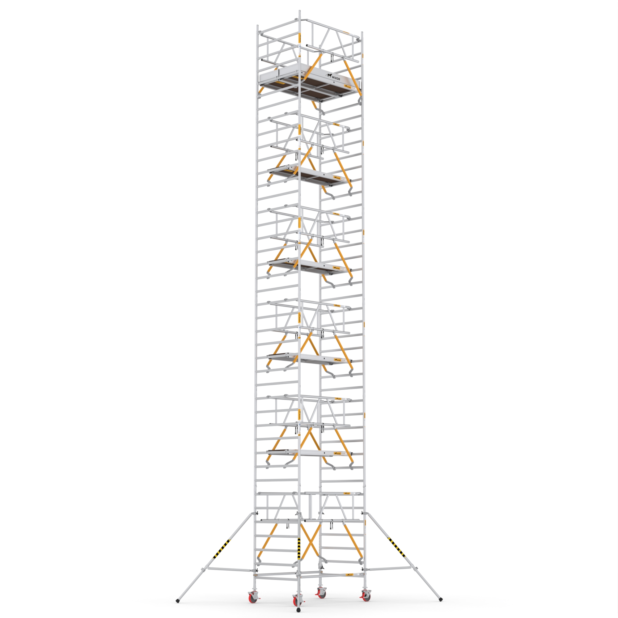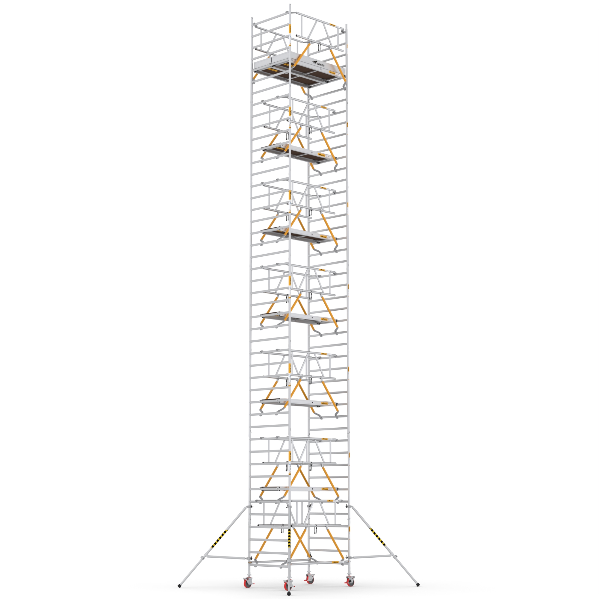 Wat deze rolsteigers onderscheidt, is de veelzijdigheid in opbouwmethoden. U heeft de keuze uit vier verschillende opbouwmethoden, waaronder veiligheidsvoorloopleuningen, schoren, schoren met 2x een veiligheidsvoorloopleuning bovenaan, en schoren met 2x een dubbele voorloopleuning bovenaan. Deze variatie stelt u in staat om de rolsteiger aan te passen aan de specifieke eisen van uw project, terwijl u toch kunt vertrouwen op de hoogste normen van veiligheid en stabiliteit.